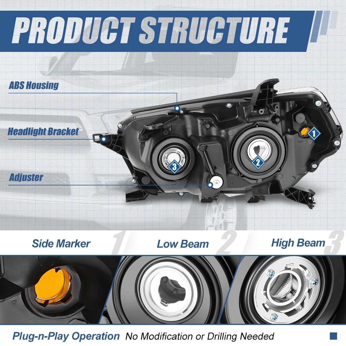 - Auto Dynasty Factory Style Halogen Headlight Lamp For Toyota 4runner Limited Trail Sr5 2010-2013 Passenger Right Side Black