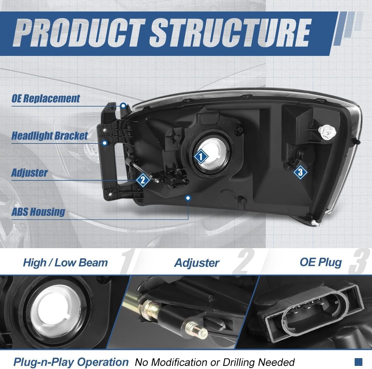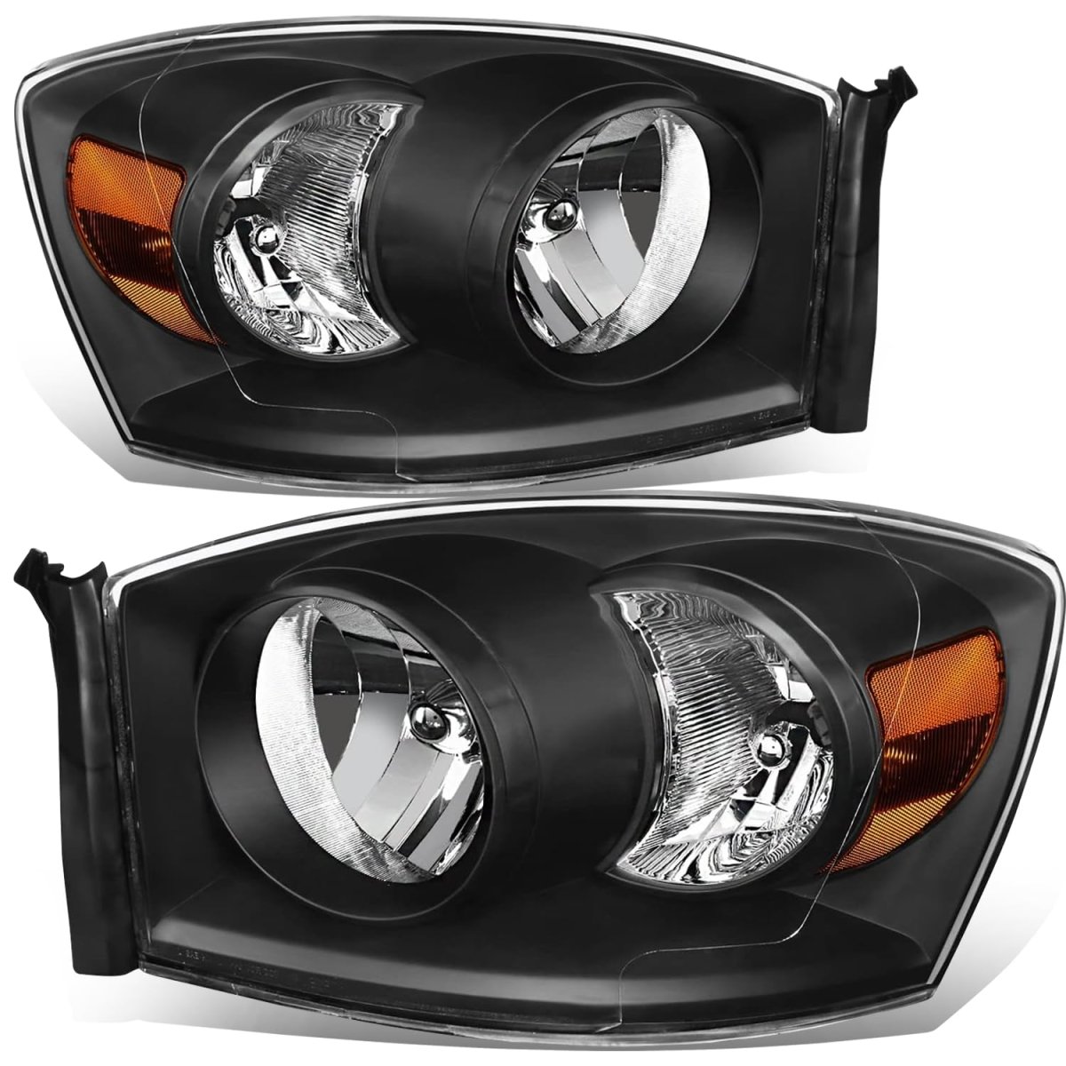 - Auto Dynasty Factory Style Headlight Assembly For Dodge Ram 1500 2500 3500 2006 Driver Passenger Side Black Housing Amber