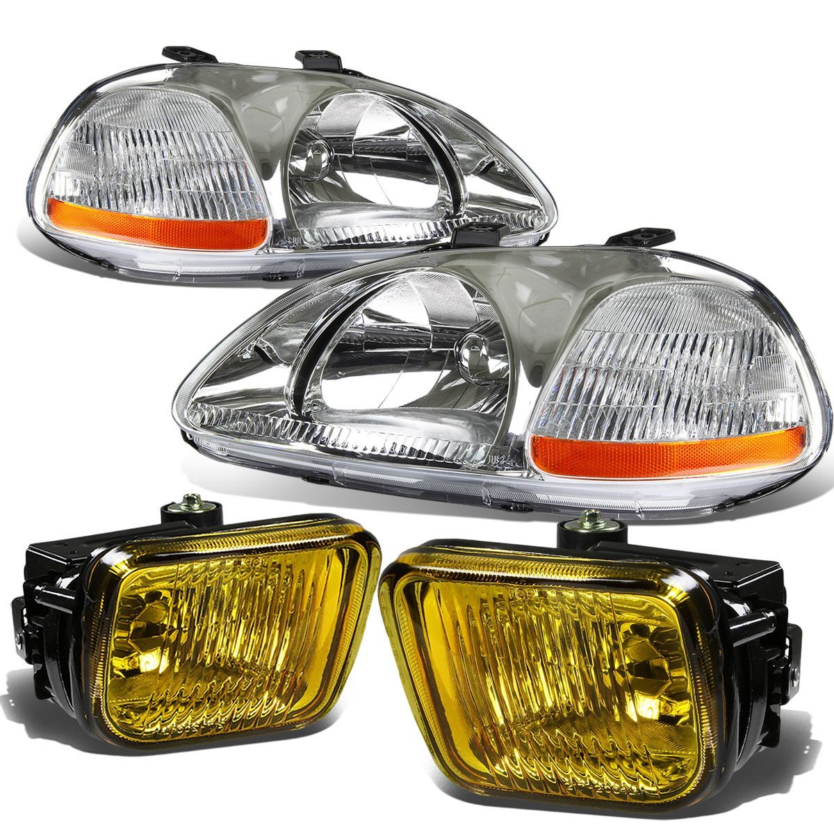 - Auto Dynasty For Honda Civic Headlight Chrome Bumper Fog Light Amber Lens 6th Generation Ej Em Ek D16