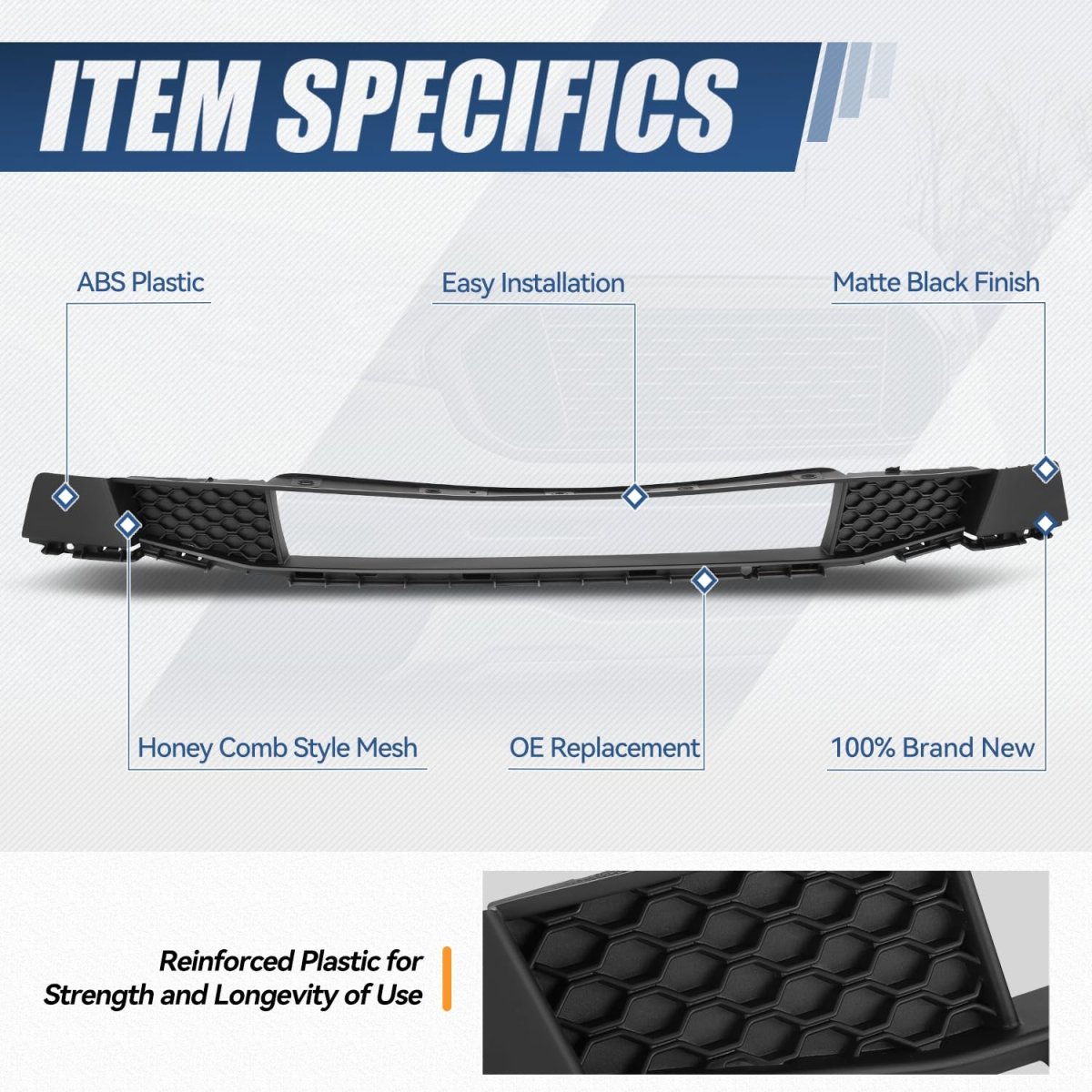Vehicle Compatibility - Front Bumper Lower Grille Cover Compatible with Ford Ranger 2019-2023. Best Replacement - Come with [1] front bumper grille, which can upgrade and replace the old or damaged one for refresh appearance of vehicle with a visually striking presence. Simple Installation - It owns precise fitment, direct replacement for original part, easy to install without any drilling and modification, even for beginners. OEM Characteristic - It is made specifically for your vehicle with exact factory style appearance and function which will make you enjoy the convenience. OEM Part Number: KB3Z17B968B. Partslink Number: FO1036198.Other fine products