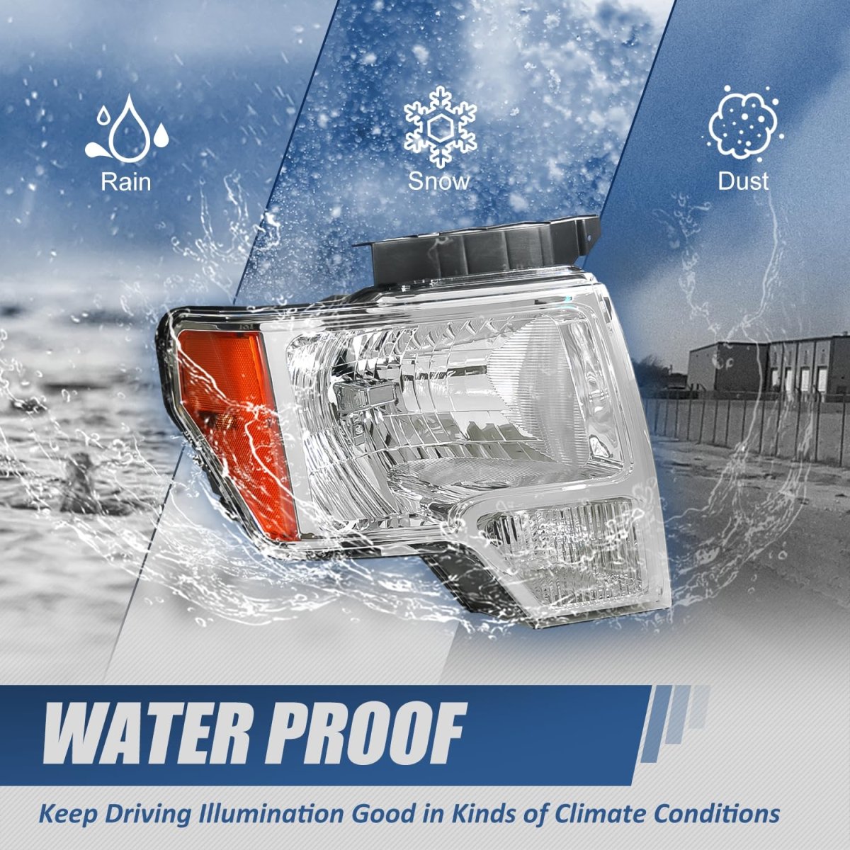 - Auto Dynasty Headlight Assembly For 2009-2014 Ford F-150 Factory Style Headlamp Replacement Passenger Right Side Chrome Housing
