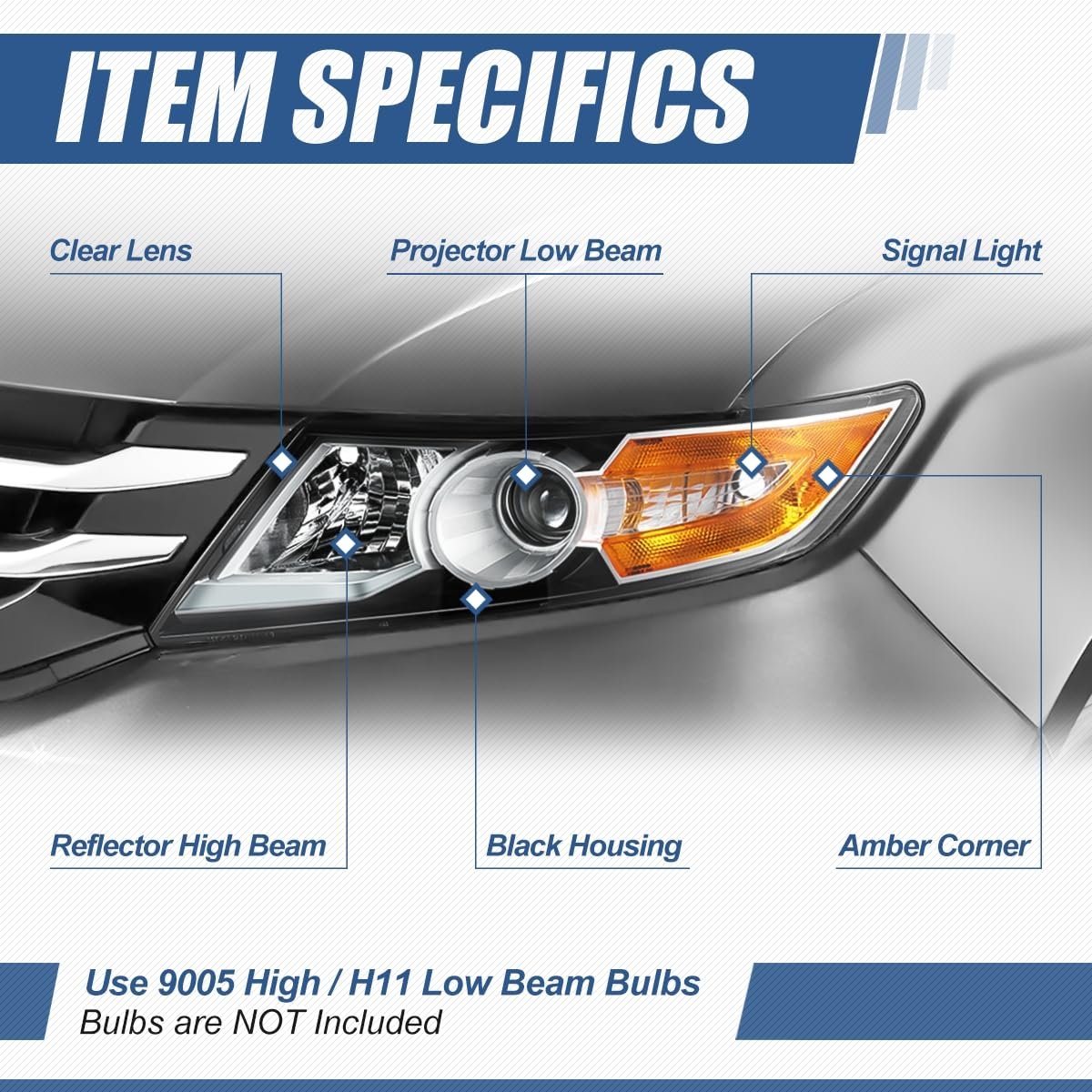 Vehicle Compatibility - Headlight assembly compatible with Honda Odyssey 2014-2017, fits halogen headlight models.. Improve Visibility and Appearance - Come with [1] driver left side headlight with turn signal, can replace the old or damaged headlamp for upgrade appearance of vehicle with a visually striking presence, and help to improve the brightness with side marker, allowing you see the road clearly at night or in extreme weather.. Product Specifics - Bulb Type: Halogen Beam Type: Reflector High / Projector Low Beam Bulb Model: 9005 High / H11 Low Beam (NOT Included) Signal Light: 3457A (Not Included) Housing Color: Black Lens Color: Clear OEM Part Number: 33150TK8A02 Partslink Number: HO2502154.Other fine products
