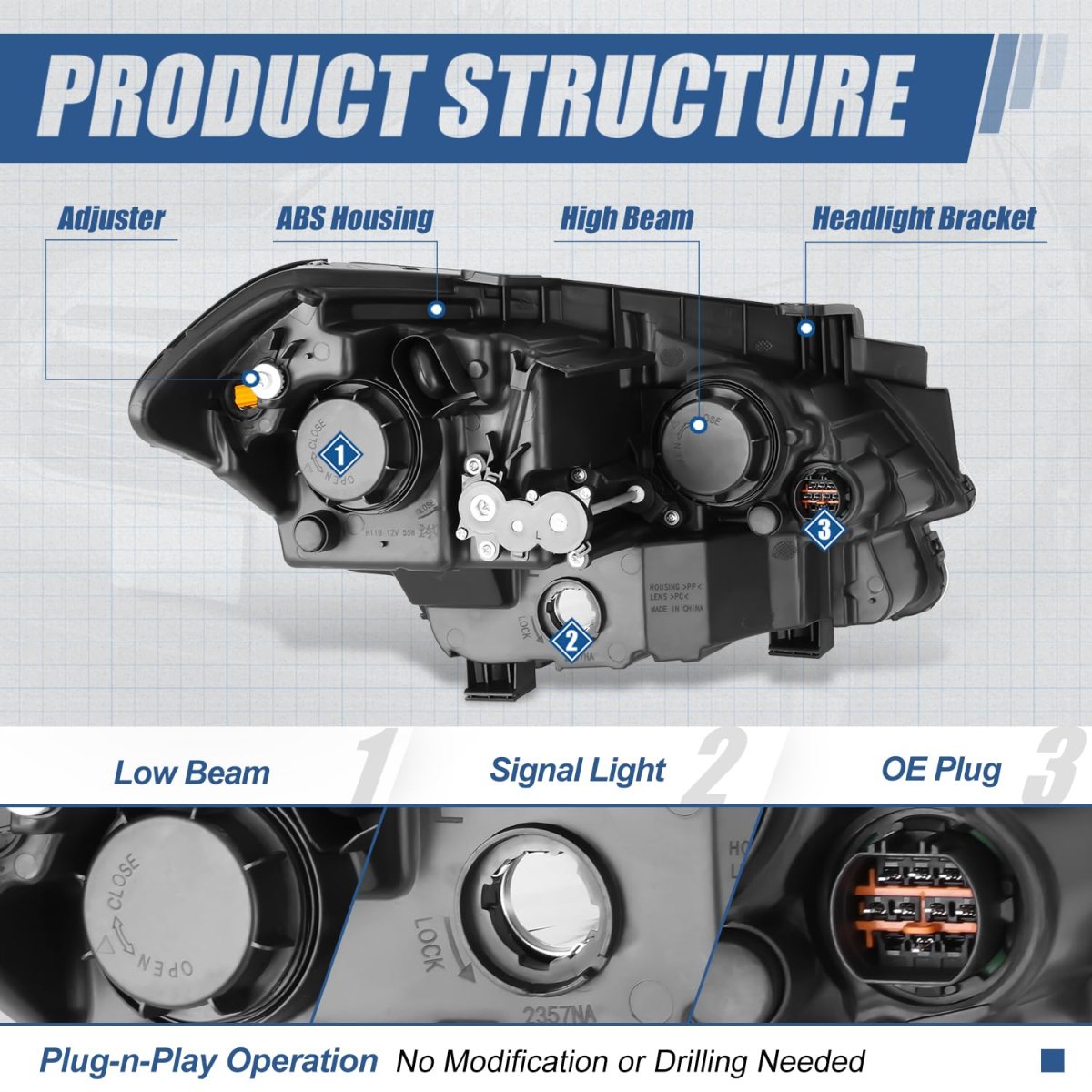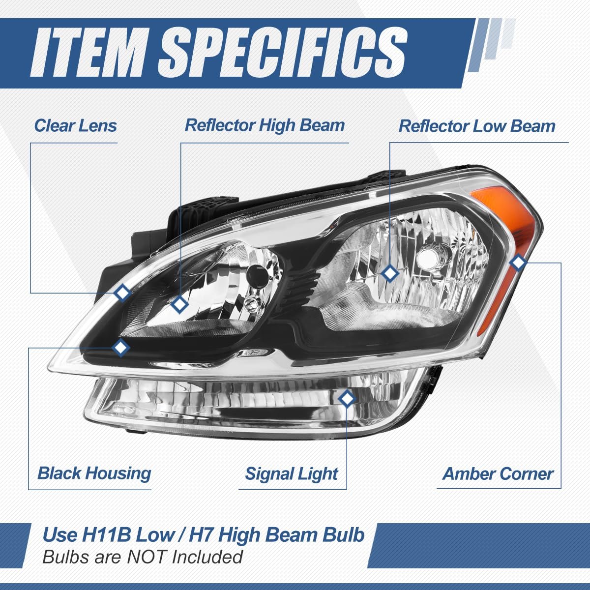Vehicle Compatibility - Headlight assembly compatible with Soul 2012-2013, fits reflector beam headlights models.. Improve Visibility and Appearance - Come with [1] driver left side headlight with turn signal, can replace the old or damaged headlamp for upgrade appearance of vehicle with a visually striking presence and help to improve the brightness, allowing you to see the road clearly at night or in extreme weather.. Product Specifics - Bulb Type: Halogen Beam Type: Reflector High / Low Beam Bulb Model: H11B Low / H7 High / 168 Front Side Marker (Not Included) Turn Signal / Parking Light: 2357A (Not Included) Housing Color: Black Lens Color: Clear OEM Part Number: 921012K540 Partslink Number: KI2502152.Other fine products