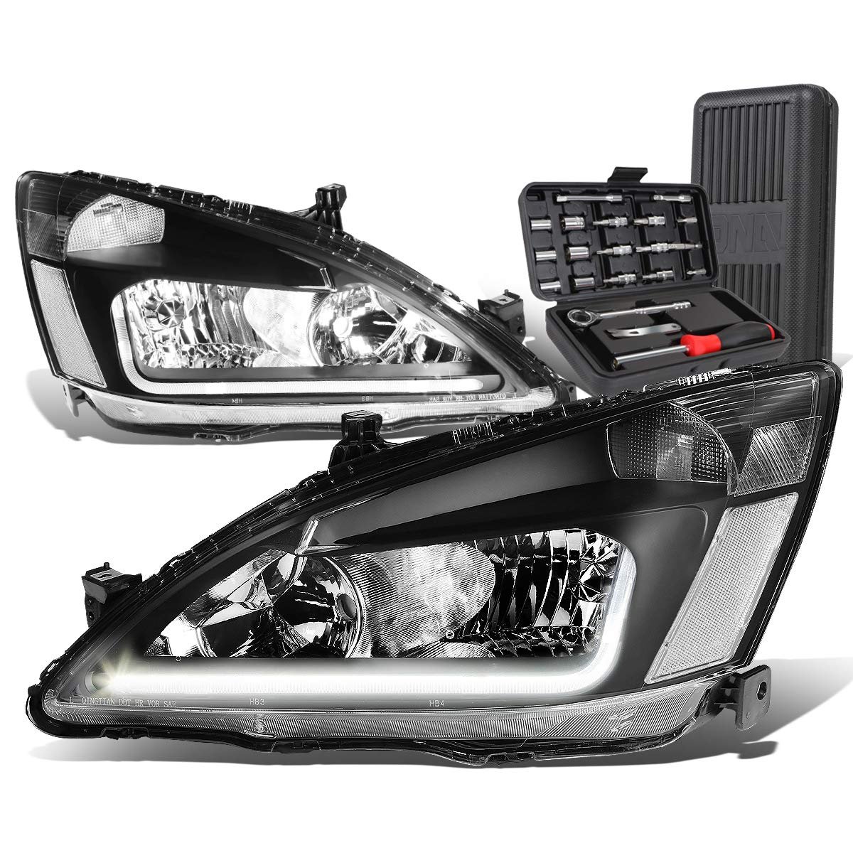 - Auto Dynasty Led Drl Black Housing Clear Corner Headlight Lamps Tool Kit Compatible With Honda Accord 03-07