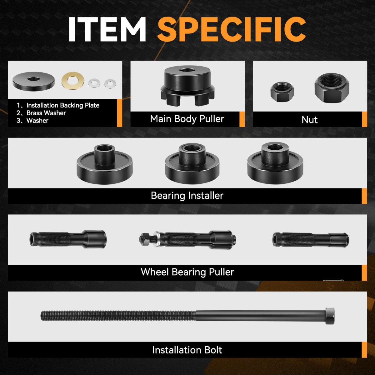 CompatibleFit for Sportster Twin Cam Vrsc and Most Harley-Davidson Motorcycles 2001-2020. Included in this comprehensive set are Wheel Bearings, Pullers, Bolts, Plates, Expander Dowels Out of a Total of 17 pieces. This extensive assortment ensures versatility and readiness for various tasks in your workshop or garage. Crafted from heat-treated high-grade steel alloy, each tool is meticulously chrome-plated to provide exceptional resistance against corrosion.. Convenient StorageThe entire set of 17 pieces is efficiently stored within a durable hard-shell storage case, complete with ergonomic handles for effortless transport. This compact design ensures convenience in both carrying and storing the comprehensive array of tools and accessories.. VersatileThis versatile 17-piece wheel bearing puller tool kit is designed for comprehensive utility, featuring an easily transportable case. It includes essential tools necessary to commence home maintenance, perform auto repairs, and undertake light-duty projects with efficiency and confidence. The set is meticulously curated to ensure readiness for a wide range of tasks, offering convenience and reliability in diverse work environments.. FeatureThis meticulously curated starter tool set is crafted to meet a diverse range of common household needs, making it an ideal choice for gifting in home, office, apartment, or dormitory settings. Its comprehensive selection of essential tools ensures practicality and functionality, catering to various maintenance and repair tasks with ease and efficiency..Other fine products