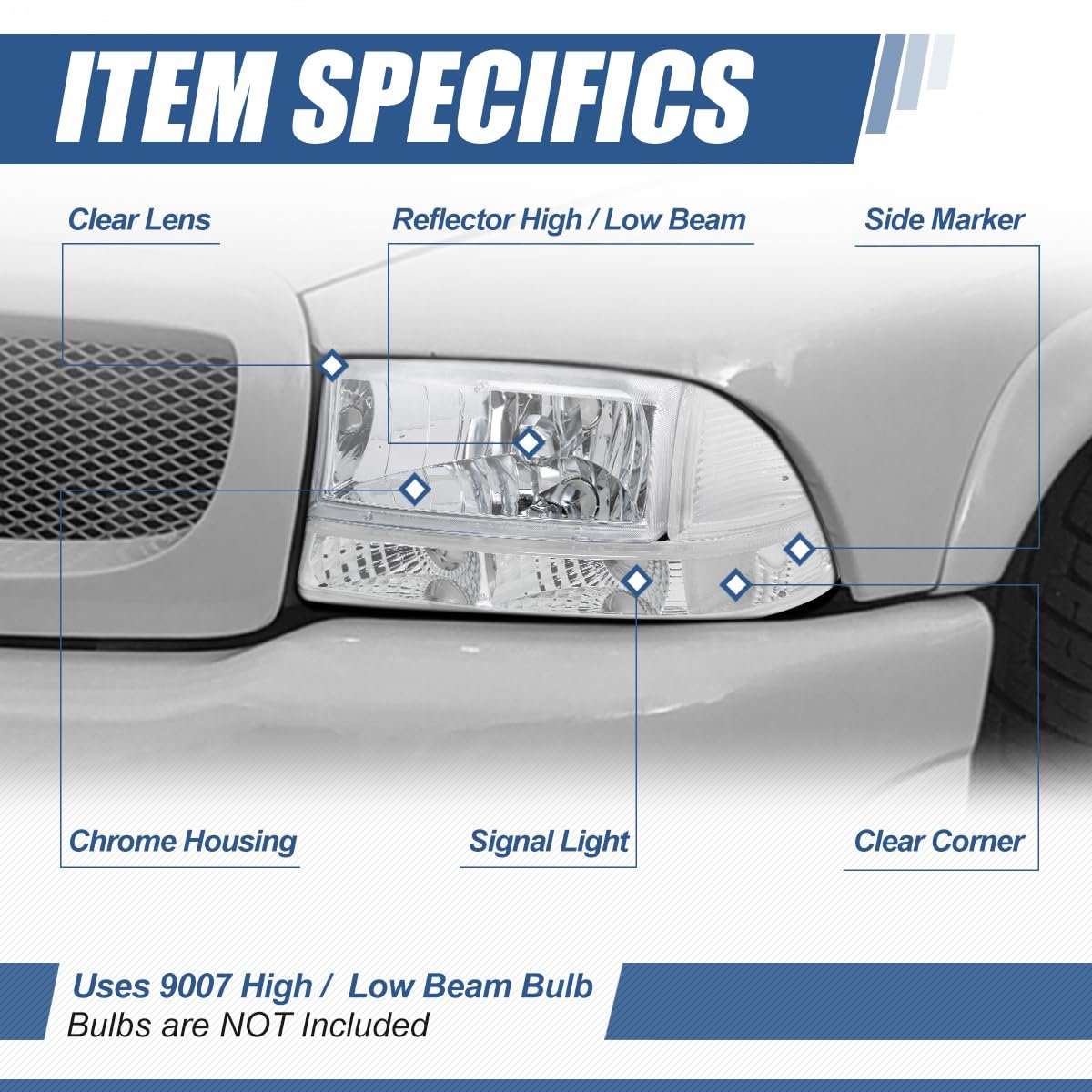 - Auto Dynasty Pair Of Chrome Housing Clear Corner Headlight W Bumper Lamps Compatible With Dodge Dakota Durango 97-04