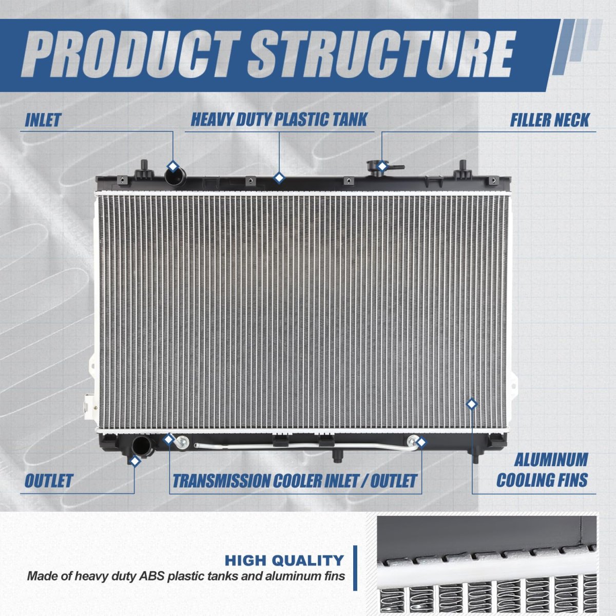 Vehicle Compatibility - radiator compatible with Entourage 2007-2008, Sedona 2006-2010.. Brilliant Performance - Come with [1] high performance lightweight design cooler radiator with aluminum cooling fins, can make the replacement and improve engine cooling efficiency, making stronger and higher capacity for coolant than stock.. Extraordinary Quality - It is constructed of aluminum construction core and heavy duty ABS plastic to ensure an extremely long lasting performance life.. Simple Installation - Direct bolt-on OE fitment or replacement for factory unit, fast and easy installation without any drilling or modification.. Product Specifics - Rows: 1 Core Dimensions: 30-5/8" W x 17-5/16" H x 1" D Inlet / Outlet: 1-3/8" Transmission Oil Cooler(TOC): Yes Engine Oil Cooler(EOC): No Flow Type: Down Flow Weight: 12.19 LBS OEM Part Number: 253104D902 Partslink Number: 2898.Other fine products