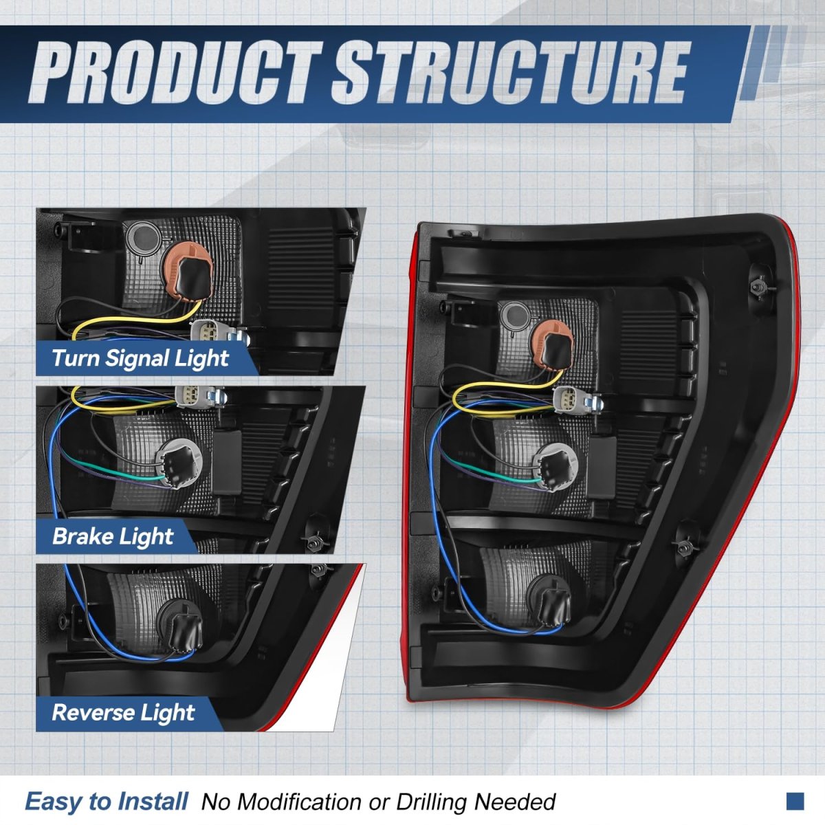 - Auto Dynasty Rear Tail Light Assembly For 2021-2023 Ford F-150 Fits Xl Xlt Models W O Blind Spot Detection With Reverse Brake