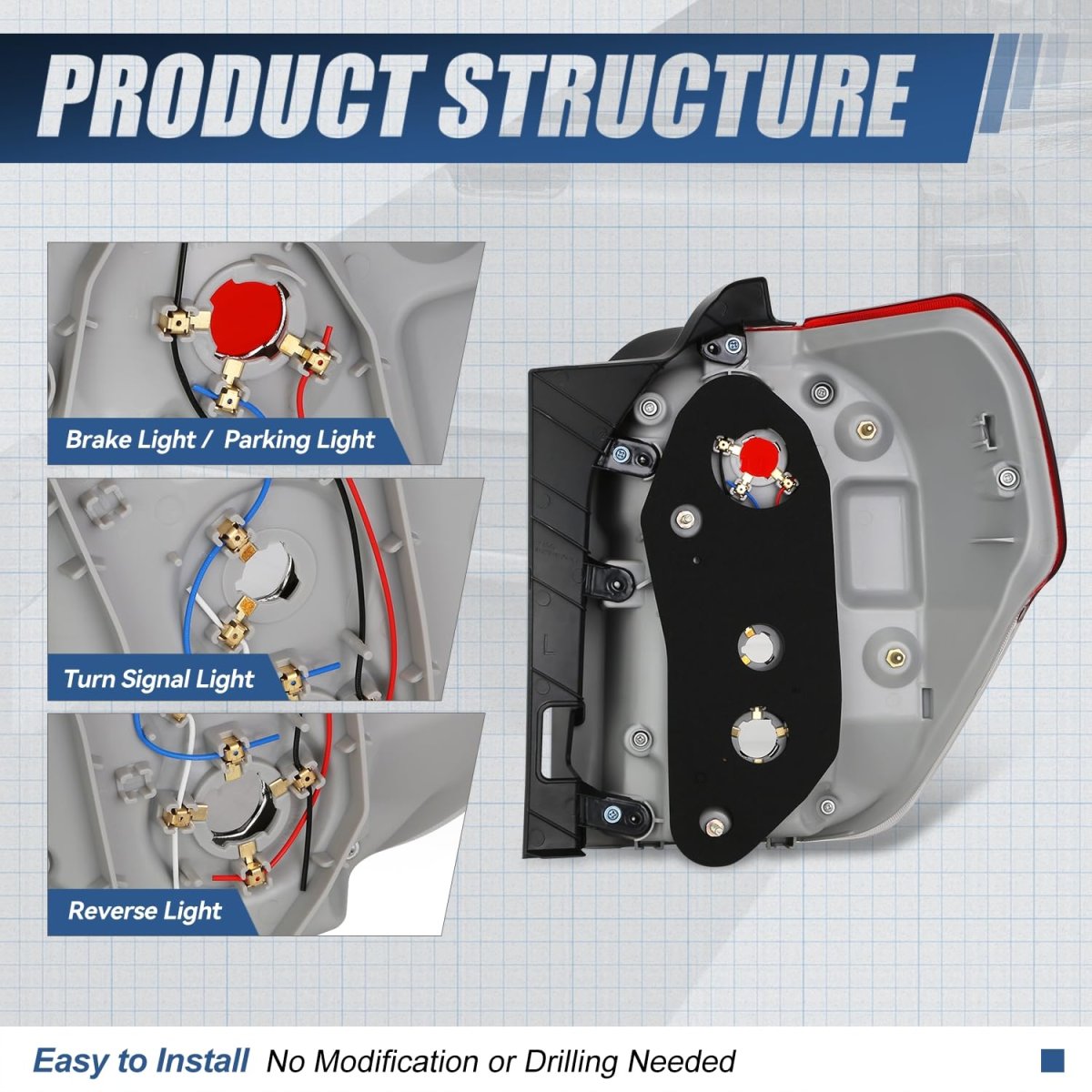Vehicle Compatibility - Rear Tail Lights Assembly Compatible with Toyota 4Runner 2010-2013. Best Replacement - Come with 1 x taillight assembly(Left) can replace the old or damaged one for upgrade appearance of vehicle with a visually striking presence and great longevity. Product Specfics - Lighting Technology: Halogen Bulb Model: 921 Reverse, 7443 Brake, 7440 Turn Signal Lens Color: Red / Clear Housing Color: Chrome OEM Part Number: TO2818147.Other fine products