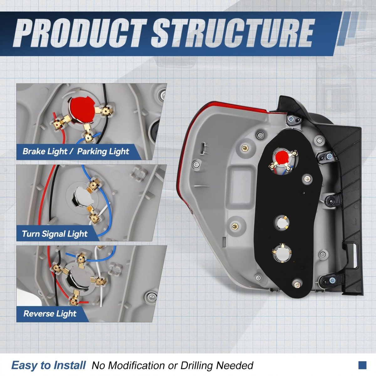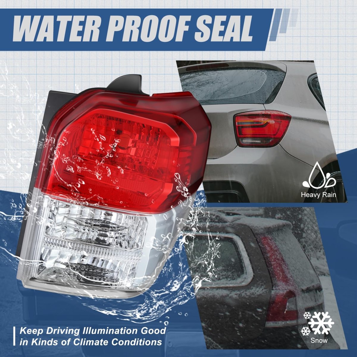 Vehicle Compatibility - Rear Tail Lights Assembly Compatible with Toyota 4Runner 2010-2013. Best Replacement - Come with 1 x taillight assembly(Right) can replace the old or damaged one for upgrade appearance of vehicle with a visually striking presence and great longevity. Product Specfics - Lighting Technology: Halogen Bulb Model: 921 Reverse, 7443 Brake, 7440 Turn Signal Lens Color: Red / Clear Housing Color: Chrome OEM Part Number: TO2819147.Other fine products