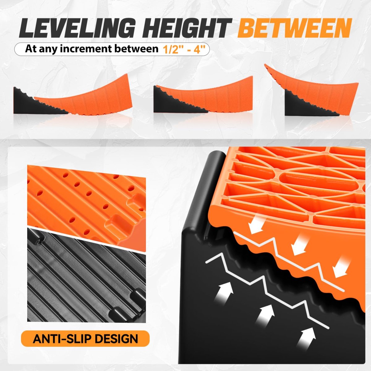 - Auto Dynasty Rv Leveling Blocks Ramp Kit 2 Packs Camper Leveler With Black Chocks Anti-slip Mats And Carrying Bag Accessories