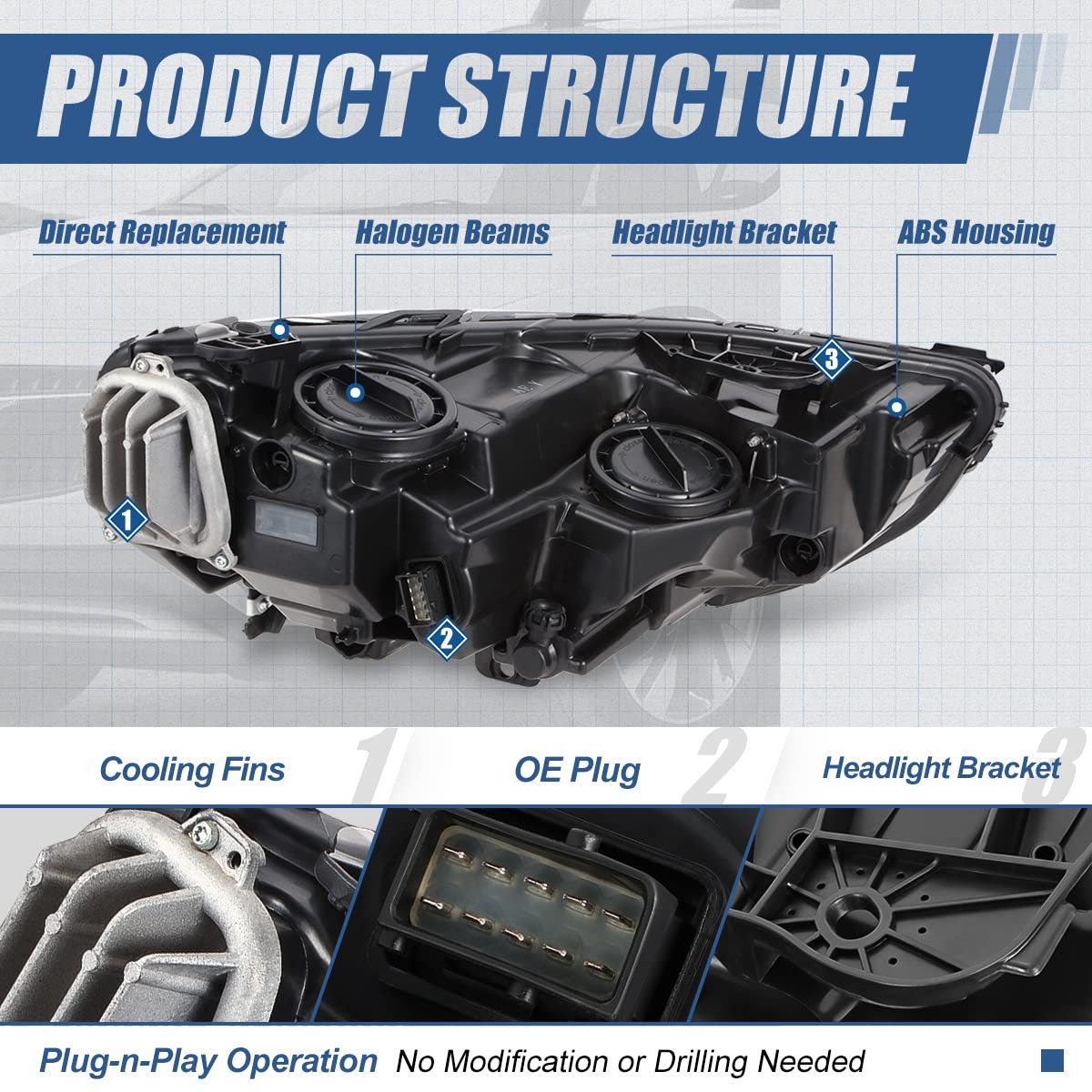 Vehicle Compatibility - Headlight assembly compatible with Buick Regal Sportback 2018-2020, Buick Regal Tourx 2018-2020, fits models with factory halogen headlights.. Best Replacement - Come with [1] left hand (Driver Side) headlight with LED switch back daytime running light and turn signal, offering a path with clearer light when driving, can replace the old or damaged one for refresh appearance of vehicle with a visually striking presence.. Simple Installation - Direct bolt-on OE fitment and replacement for original part, easy to install without any drilling or modification.. Product Specification - Bulb Type: Halogen Beam Type: Reflector Bulb Model: H7 High / Low Beam (Included) LED Color: White, Amber LED Energy: 12V Housing Color: Black Lens Color: Clear OEM Part Number: 39209174 Parkslink Number: GM2502518.Other fine products