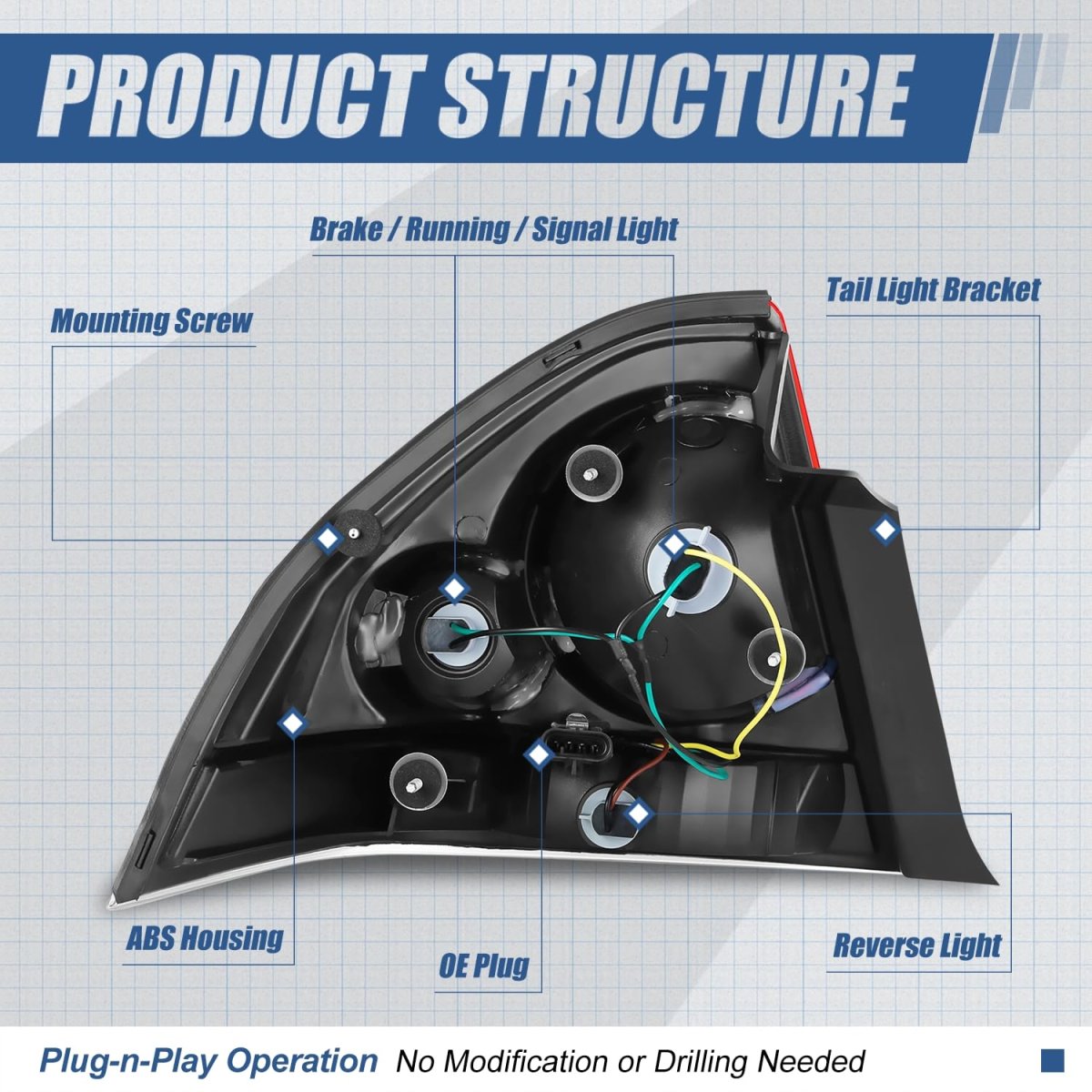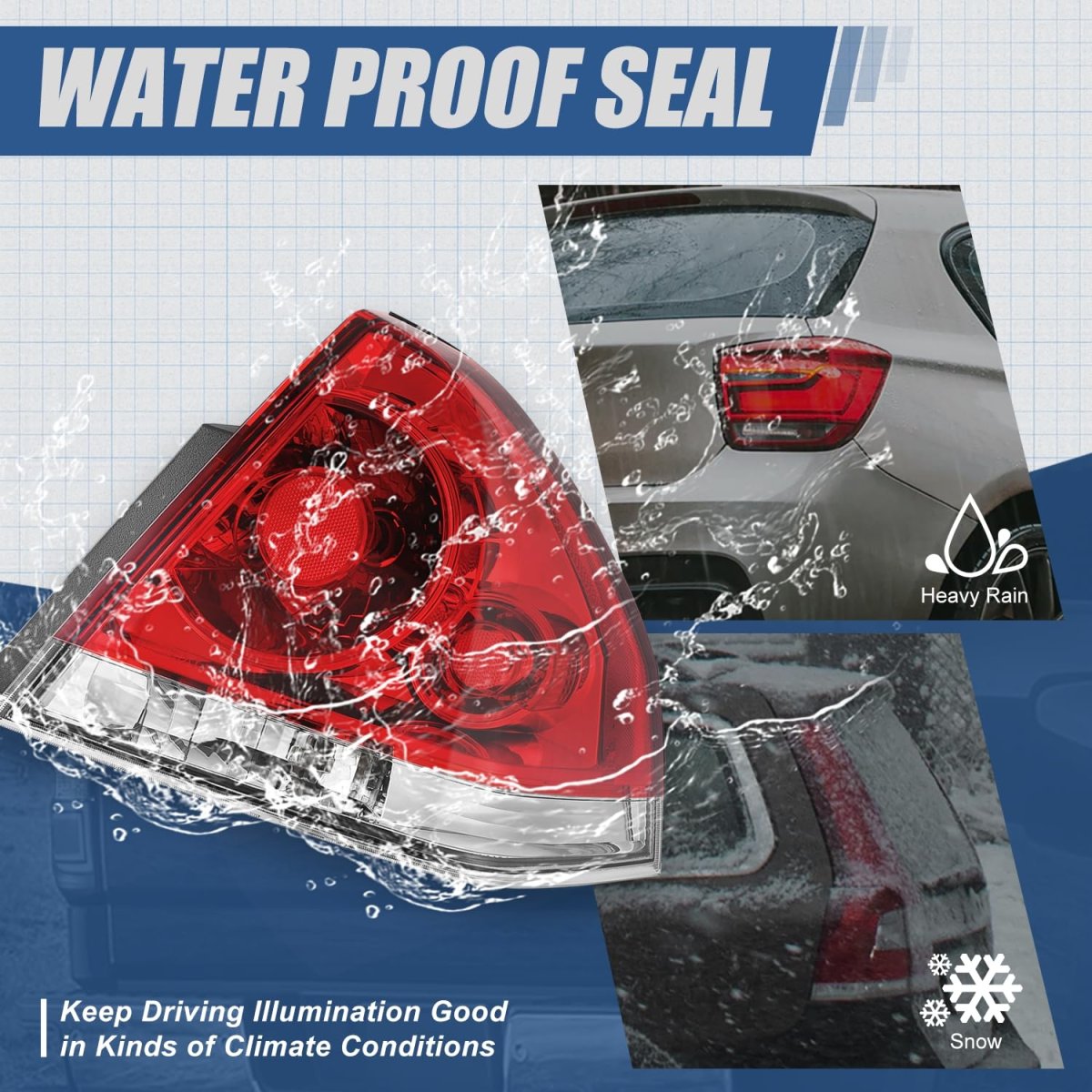 Vehicle Compatibility - Brake tail lights assembly compatible with Chevrolet Impala 2006-2013, Chevrolet Impala Limited 2014-2016. Improve Visibility and Appearance - Come with 1 x Taillight (Right) can replace the old or damaged taillight for upgrade appearance of vehicle with a visually striking presence, and help to improve the brightness, allowing you see the road clearly at night or in extreme weather. Product Specfics - Lighting Technology: Halogen Bulb Model: 921 Reverse, 3057 Turn Signal, 3057 Tail Light Lens Color: Red / Clear Lens Housing Color: Chrome OEM Part Number: 25971598 15826709 15873297 25853830 Partslink Number: GM2801193.Other fine products