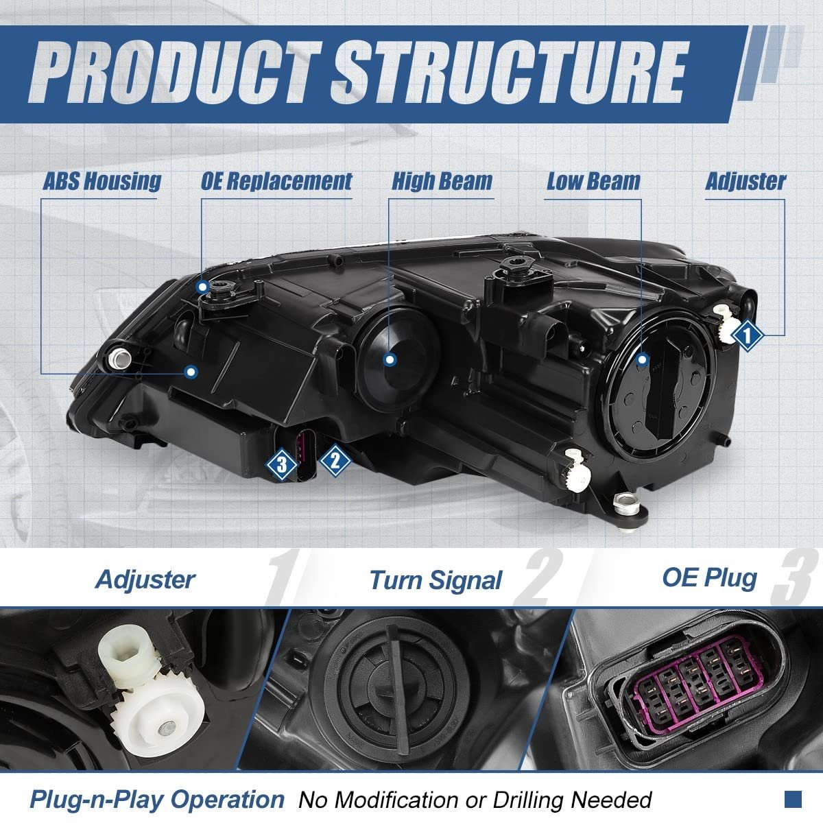 Vehicle Compatibility - Headlight assembly compatible with VW Jetta 4-door sedan 2011-2018, fits models with halogen headlights Only.. Best Replacement - Come with [1] right hand (Passenger Side) headlight with turn signal and parking light, has been made to exact OEM specifications to ensure the quality and fitment, to refresh appearance of vehicle with a visually striking presence.. Simple Installation - Plug-n-Play Operation, direct bolt-on OE fitment and replacement for original part, fast and easy to install without any drilling or modification.. Product Specification - Bulb Type: Halogen Beam Type: Reflector High / Low Beam Bulb Model: H7 High / Low Beam (Included) Signal Light: 7507 (Included) Housing Color: Black Lens Color: Clear Weight: 8 LBS OEM Part Number: 5C7941006 Parkslink Number: VW2503146.Other fine products