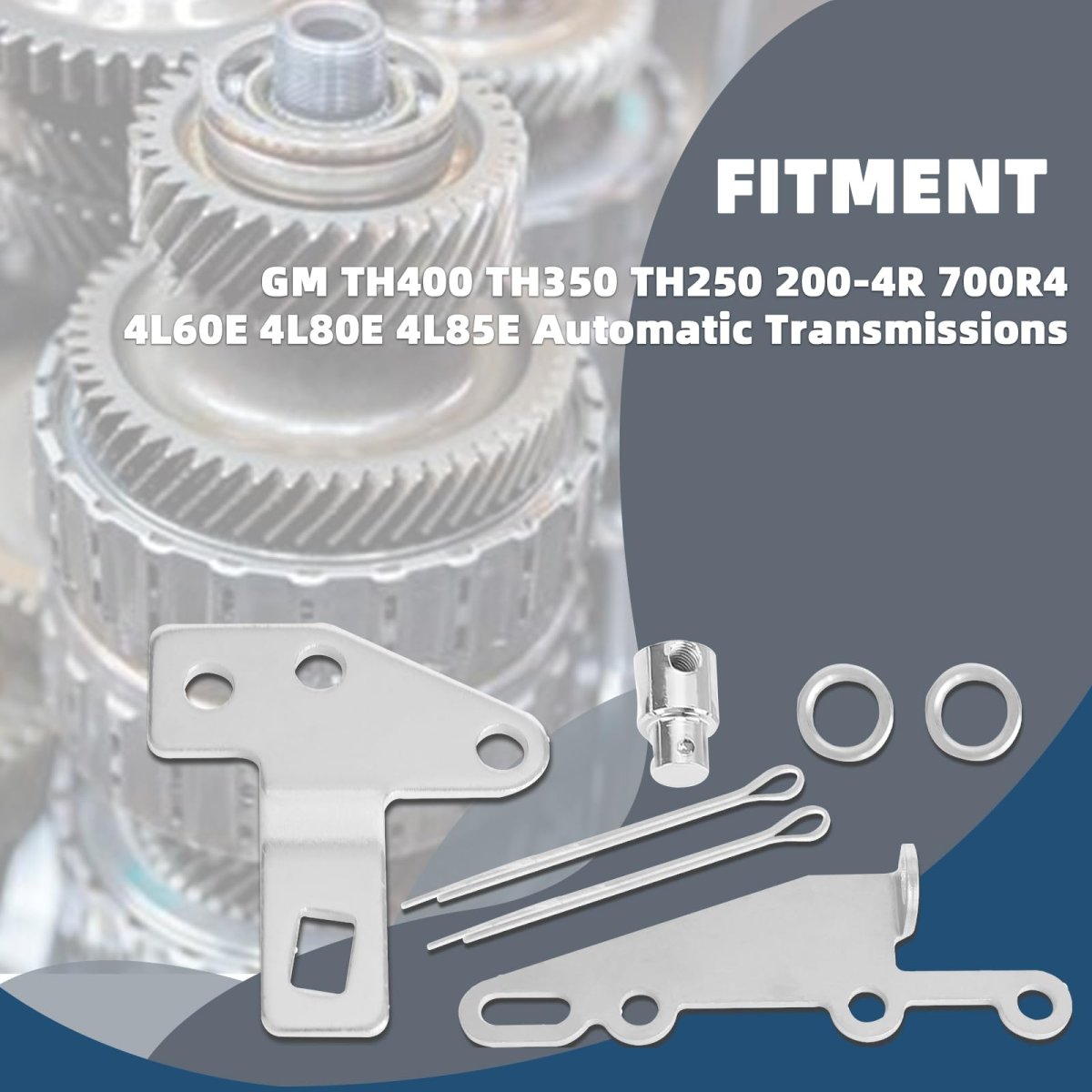 EXACT MATCH: Automatic Shifter Automotive Bracket and Lever Kit compatible with GM TH400, TH200-4R, TH350, TH250, 2004R, 700R4, 4L60E, 4L80E, 4L85E Kit Automatic transmissions. QUALITY: Crafted from high-quality material, the bracket and lever kit is built to be durable, wear-resistant and long-lasting, ensuring reliable performance over time. INCLUDES: The kit includes the cable bracket, shift lever, spacers, swivel and cotter pin, providing all the essential components for installation. DIRECT REPLACEMENT: Designed to match the appearance and function of the original part, this kit offers an easy, direct replacement for your vehicle, making installation hassle-free.Other fine products