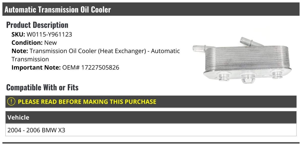 - Automatic Transmission Oil Cooler For 2004-2006 Bmw X3 With