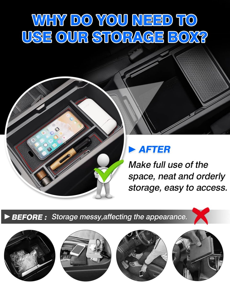 Specific To CRV---Great center console organizer for 2023 2024 Honda CR-V CRV EX EXL Sport Touring Hybrid. With its durable structure and convenient features, they are absolute accessories for your daily driving.. Extra Storage---Autorder middle console organizer makes full use of every inch of space in your armrest box. It can ensure your middle console is not messy and keep small items such as keys, cash, and phone well-organized. Allowing you to have a clutter-free and organized storage experience!. Match Perfectly---Tailor-made according to the original armrest box. The dimensions and curves perfectly align with the interior, ensuring the armrest tray inserted into the center console remains firm and stable. So it won't slide or make annoying noises when accelerating, decelerating, or stopping.. Well-made Organizer---It is made of a durable and sturdy ABS shell. The even edge and smooth surface give the armrest storage box an OEM part appearance. Additionally, the provided tasteless and non-toxic rubber liner effectively prevents items from sliding and rattling.. Easy To Install & Washable---Directly insert it into the armrest box.It's easy to remove and rinse with water for a fresh look in an instant when the center console insert tray gets dirty!.Other fine products