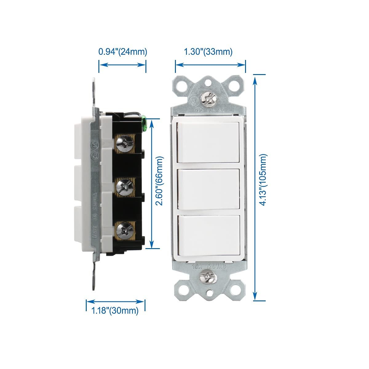 - Baomain 2-decora Traditional Single Pole Triple Rocker Switch With Ground Screw 120 Vac 15 A 2-gang Wall Plate Size 4 50 X 57