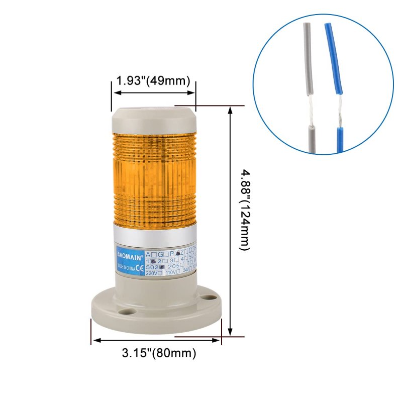 - Baomain Warning Continuous Light 220 Vac Yellow Led Industrial Signal Tower Lamp Ltp-502t