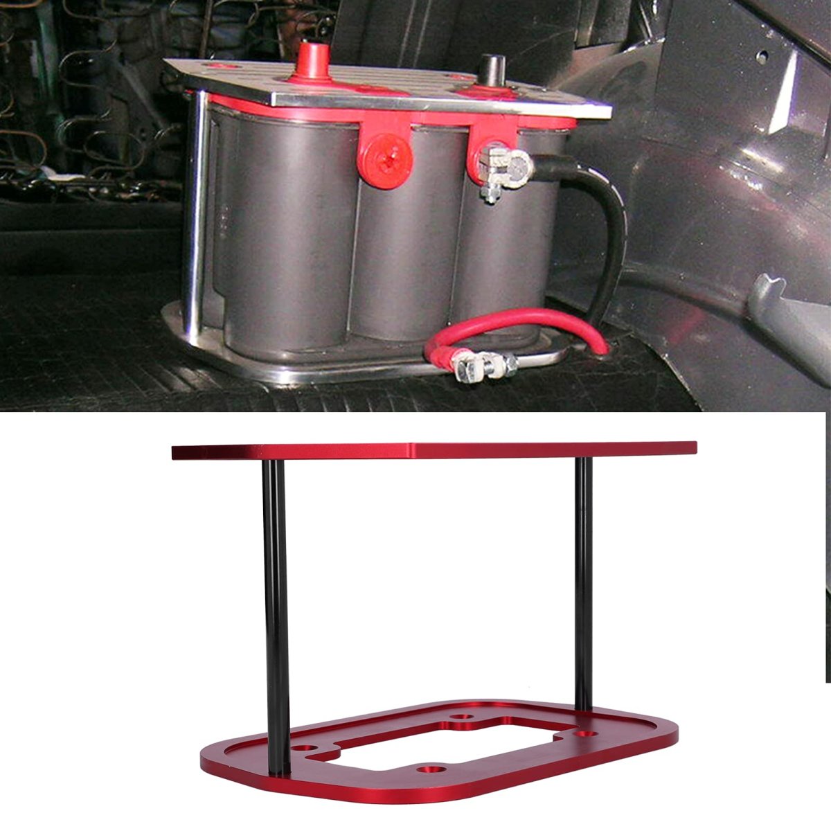 Fitment: The tray can be bolted down in any place, such as trunk, seat pan, side wall, bulk head, floor, frame. Professionally manufactured, high precision with great performance.c. Product Advantages: Impact down to ?20H, withstand , gas, oil and other pollutants, to exposure. Establish compliance with standard specifications and strictly follow factory quality control to ensure excellent performance.. Safety: Keep the battery securely installed and limit its movement, ensures the safety of battery. Original standard, direct aftermarket replacement for old or broken one.. High Strength Metal Material: Battery Tray is made of high:quality aluminum, light and strong, with high strength and service life.. Packing List: This product contains 2 trays, 2 brackets, and 4 screws..Other fine products