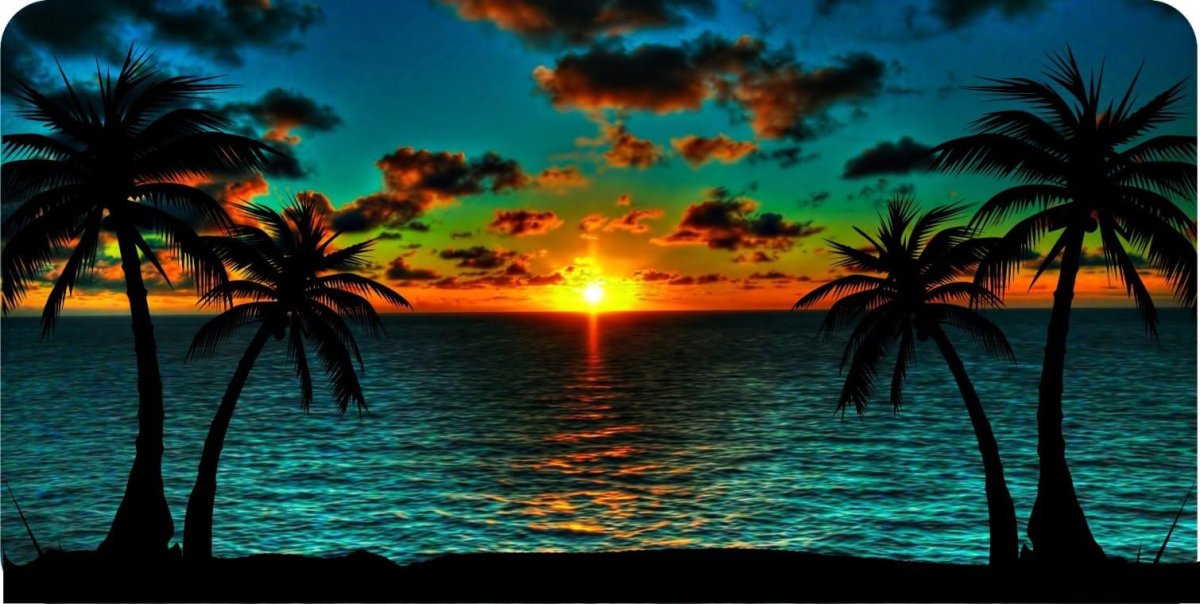 Palm Trees At Sunset Photo License Plate