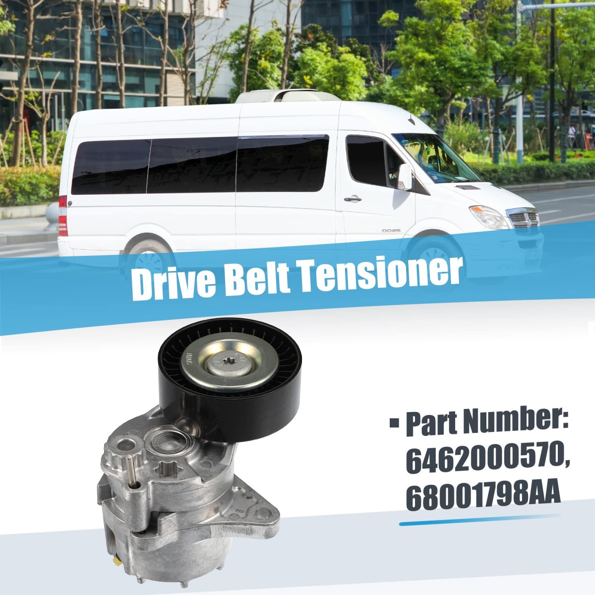 [OE Number of Belt Tensioner and Pulley Assembly] 38415, 5080243AA, 6112000270, 6112000370, 26775, 6112000470, 6112000570, 6462000270, 6462000370, 6462000570, 68001798AA, 68001798AB, 89451. [Fitment] Fit for Dodge Sprinter 2500 2003-2006, for Dodge Sprinter 3500 2003-2006, for Mercedes-Benz E320 2005-2006. [Function of Belt Drive Tensioner] Replace the old or broken belt tensioner to avoid noisy tensioner pulley and no longer withstand belt noise, achieve proper belt tension, alignment, ensure the well performance.. [Features of Belt Tensioner w/ Pulley] Adopt with solid metal for wear resistance, shatterproof, not easy break or deform, ensure longer service life. Torsional round spring provides reliability and consistent tension.. [Package] Include 1x Accessory Drive Belt Tensioner Assembly..Other fine products
