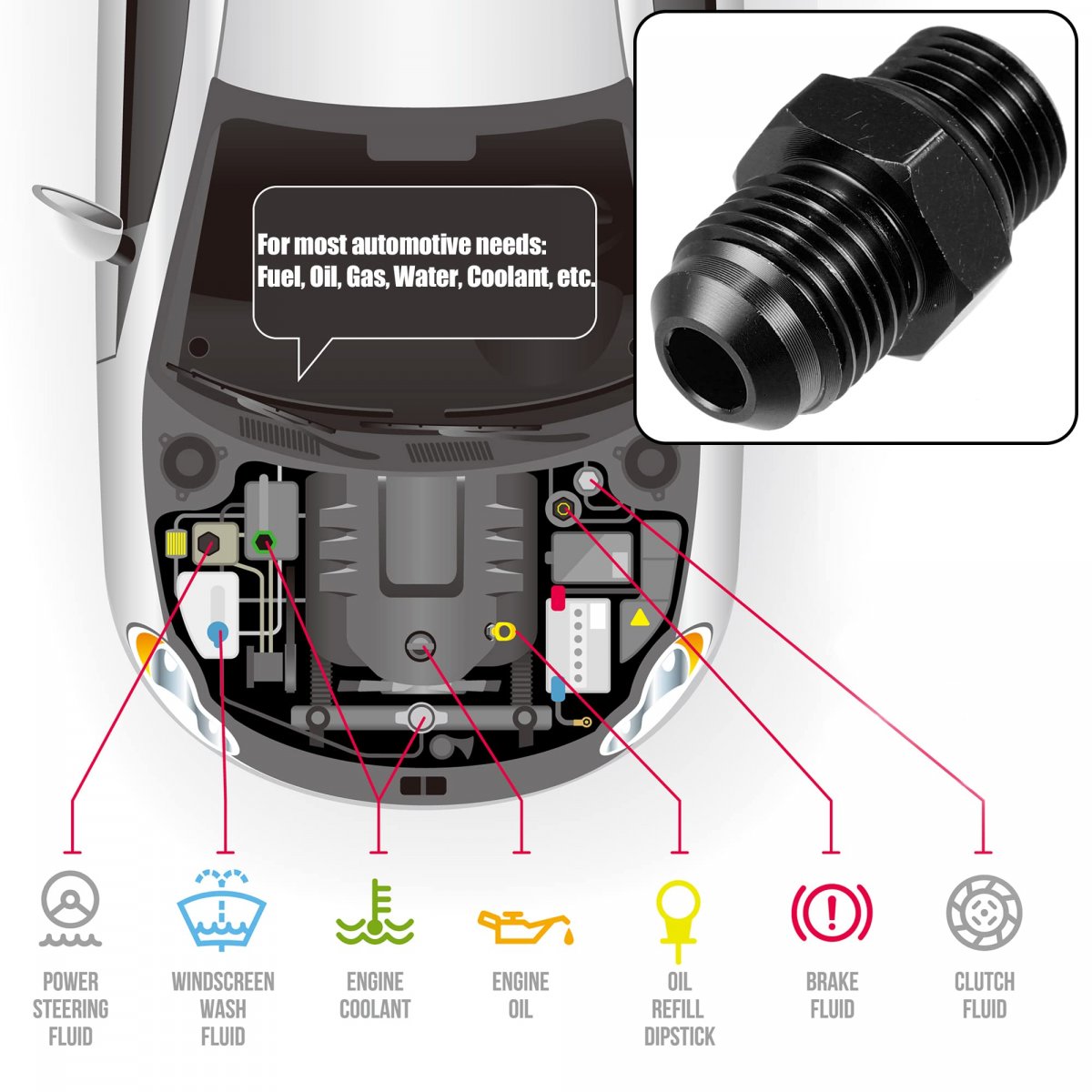 Size: AN6 Male to M14 x 1.25mm Male flare union.. Material: Male Flare Union Coupler is made of good quality material aluminum alloy. Black anodized finish for durability, and strength, intended for long service life.. Fitment: Male to male flares coupler usually used in the fuel system, such as fuel hose extends, the line connects to the fuel filter, fuel pump, cooler system. fit for oil; gas; fuel; water; fluid and air.. Features: Designed for smooth flow with tight and leakproof connections..Other fine products