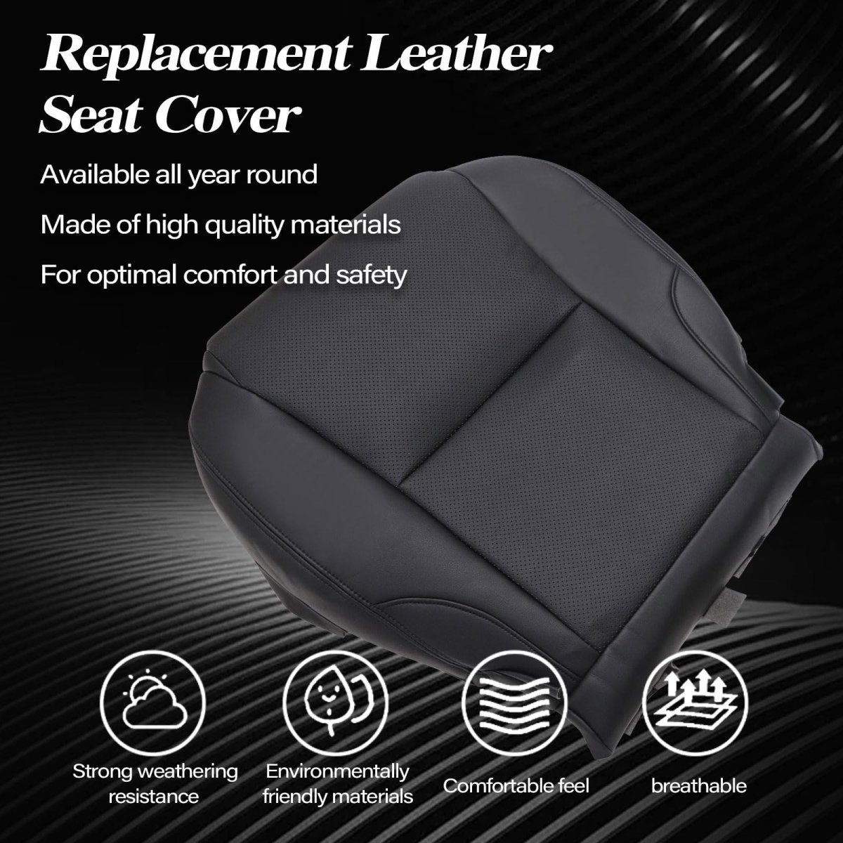 MaterialThis product is made of microfiber fine leather, the leather seat cover is more wear-resistant and can withstand the friction in daily use. The surface of the leather seat cover is relatively smooth and stains do not penetrate easily. Due to the wear-resistant and easy-to-clean characteristics of the leather seat cover, it has a relatively long service life.. Product InstallationProducts are easy to install. With each product we provide an installation video. After receiving the product, if you need video reference, we will send you the installation video.. Note SecosAutoparts provides you with the preferred products and services, and looks forward to your use to bring you a comfortable driving experience!.Other fine products