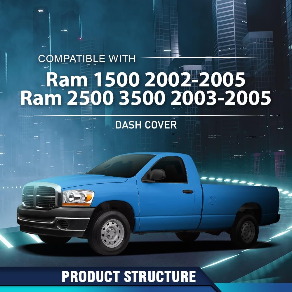 VEHICLE COMPATIBILITY: Compatible with Dodge Ram 1500 2002-2005; Compatible with Dodge Ram 2500 3500 2003-2005. You can place Dash Cover on the oginial product. RUGGED CONSTRUCTION: High-quality TPE materials are selected to ensure that the trim boards have good durability. They can withstand the test of time and daily use, not easy to lose color, deformation, delamination. Provide consumers with a long-term stable experience. EXQUISITE CRAFTSMANSHIP: Each step of the PIT66 dashboard upper trim panel is meticulously handled from cutting, sanding to assembly, ensuring that the edges of the trim panel are smooth and the splices are tight. COOLING FUNCTION: In the sun exposure, it can reduce the thermal transfer to the instrument panel to avoid deformation or damage to the instrument panel, and also prevent the high temperature inside the car due to the overheating of the instrument panel, and enhance the comfort of the car.. EASY INSTALLATION: Manufactured according to factory specifications. If you have no installation experience, professional installation is highly recommended.Other fine products