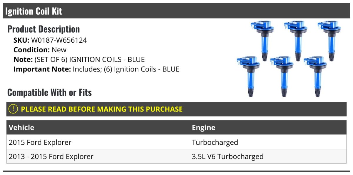 - Blue Ignition Coil Kit Set Of 6 For 2013-2015 Ford Explorer 3 5l V6 Turbocharged