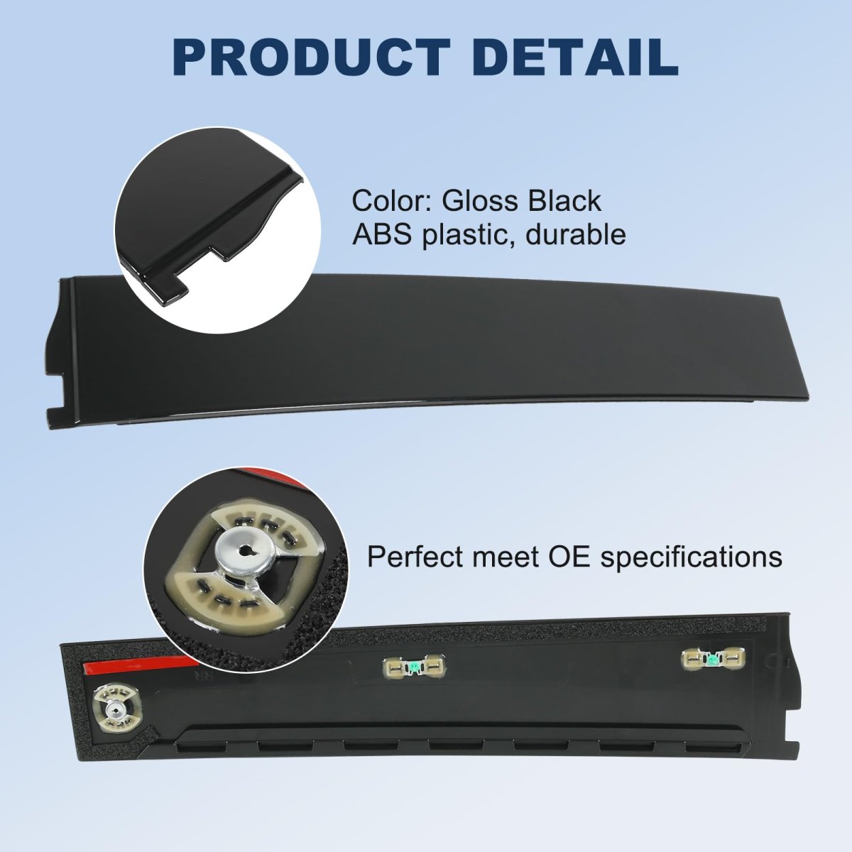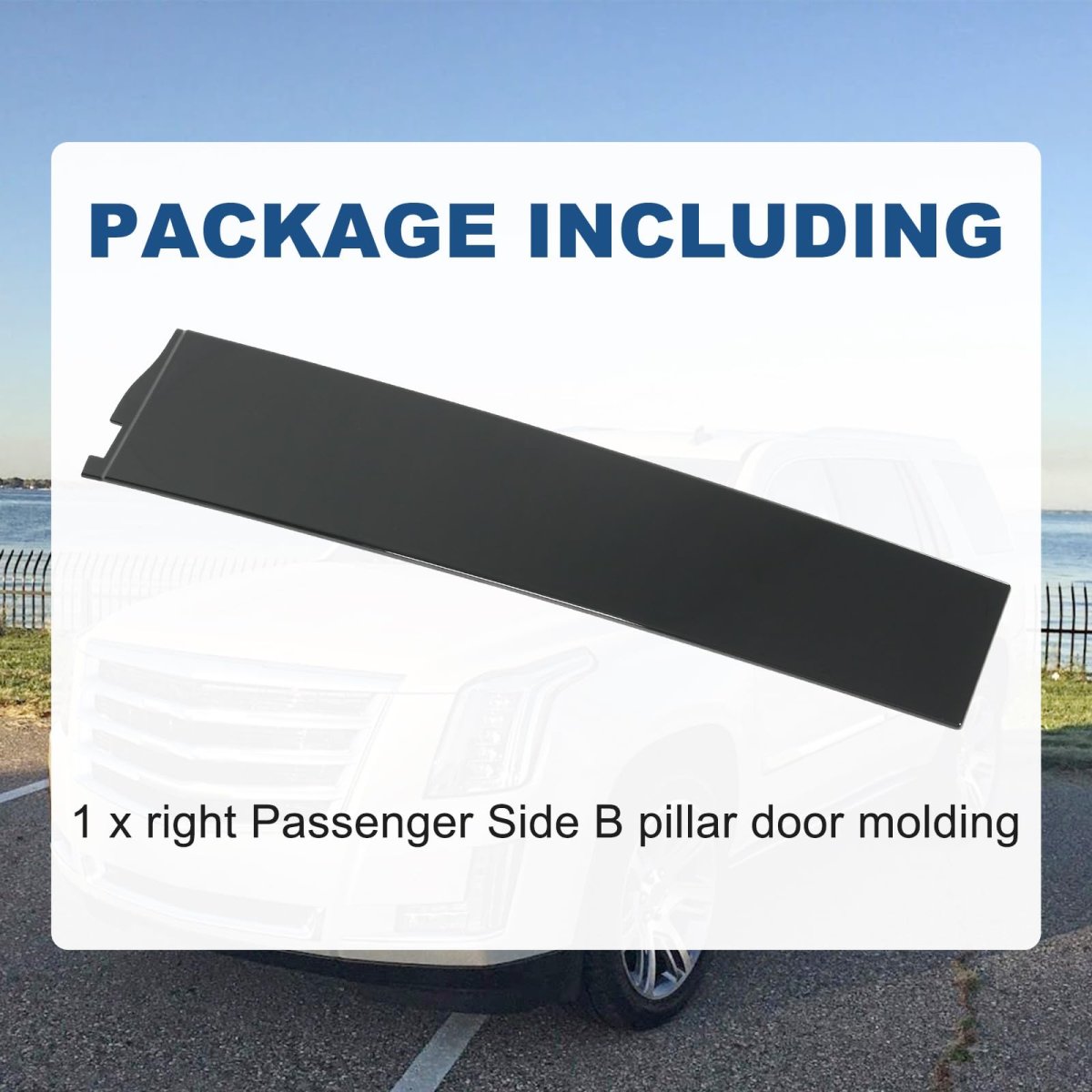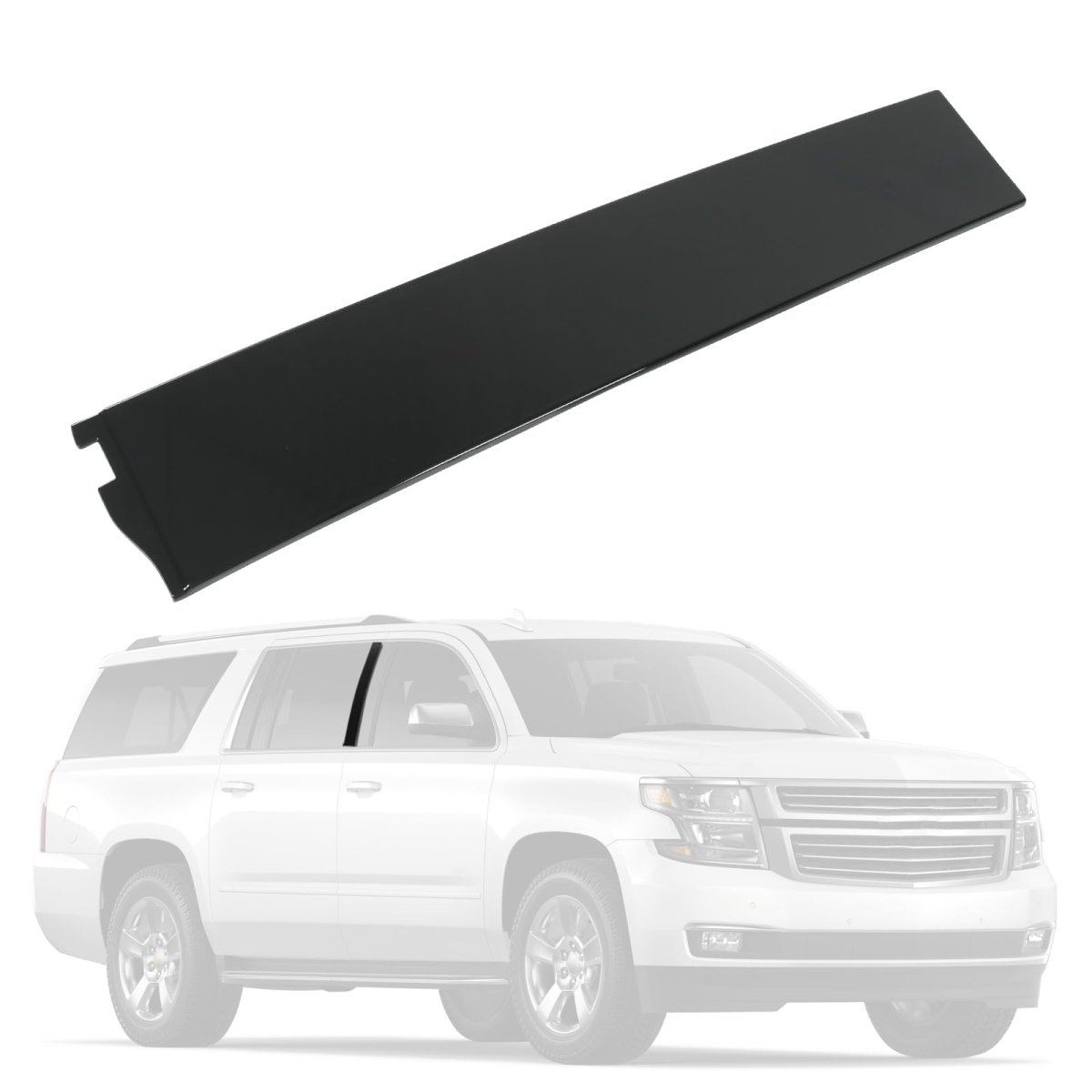 B pillar Rear door window trim Fit for:replacement for Chevrolet Suburban 2015-2018replacement for Chevrolet Suburban 3500 HD 2016-2018,replacement for Chevrolet Tahoe 2015-2018,replacement for GMC Yukon/XL 2015-2018,replacement for Cadillac Escalade/ESV 2015-2018.. Part number84263147 926-244. Fit Position: Rear Door Passenger Side.Color:Gloss Black.. Reduce noise and prevent water leakage: Made of high grade ABS plastic and rubber,the surface is painted black,and the paint is not easy to peel off.The columnar decoration improves the windshield seal,prevents water leakage and reduces wind noise on the highway.. Fashionable design: The black B-pillar trim cover features a smooth and stylish design, with an exterior contour that matches the lines of your vehicle, effectively enhancing the overall appearance of your vehicle..Other fine products