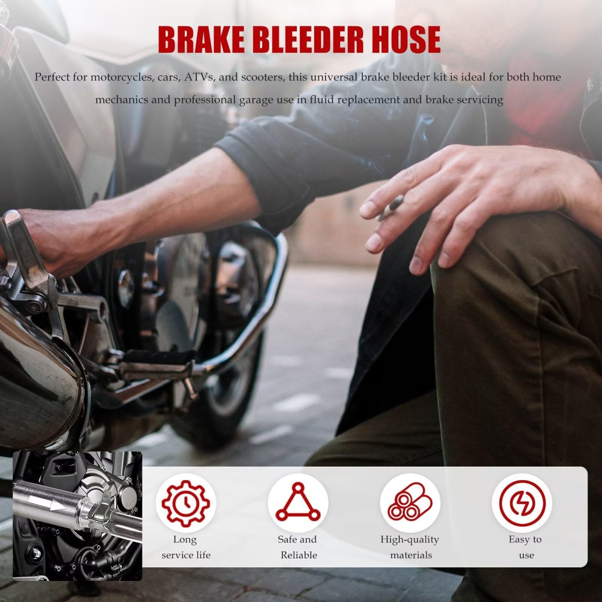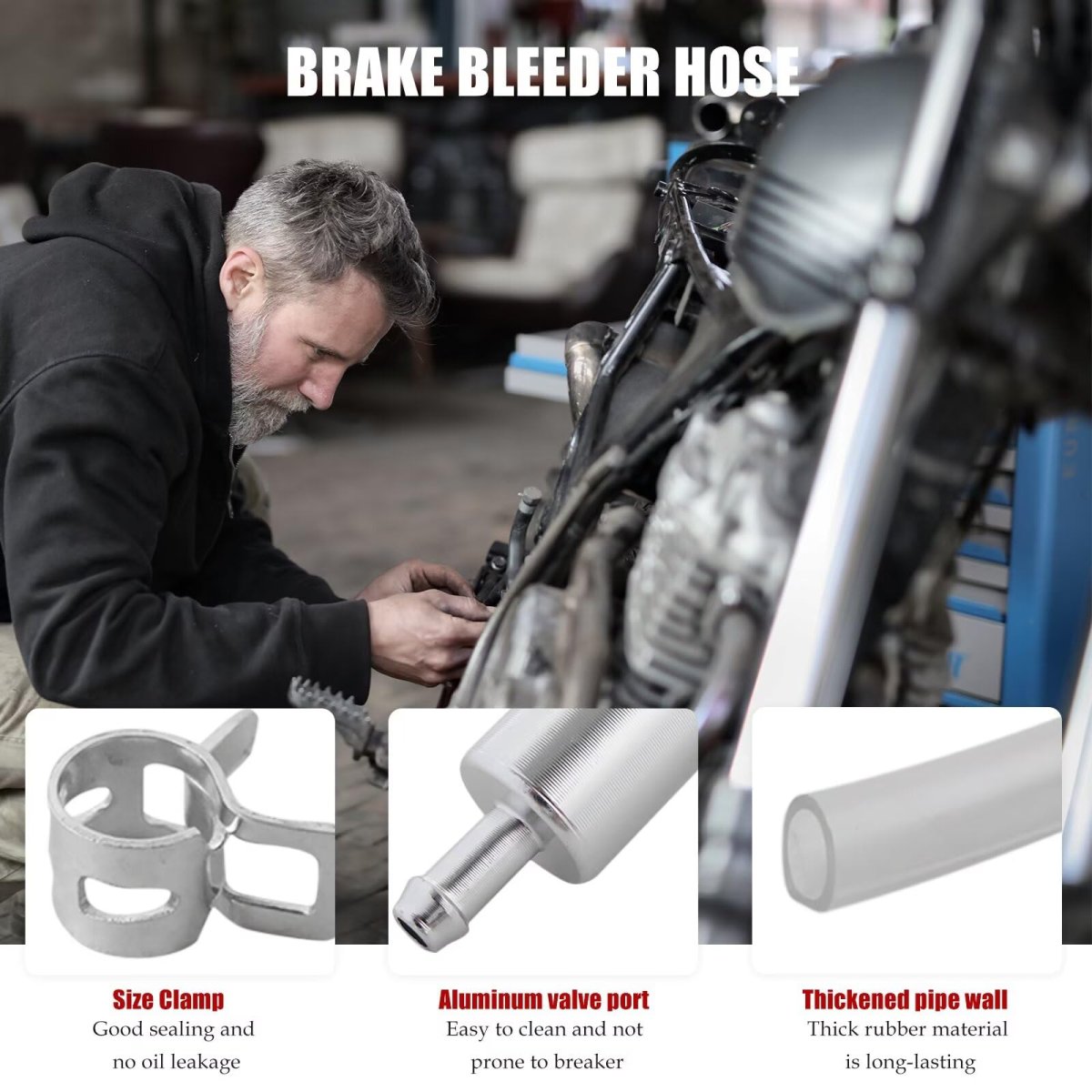 - Brake Bleeder Hose Motorcycle Kit 2pc With Check Valve Compatible For Car Clutch