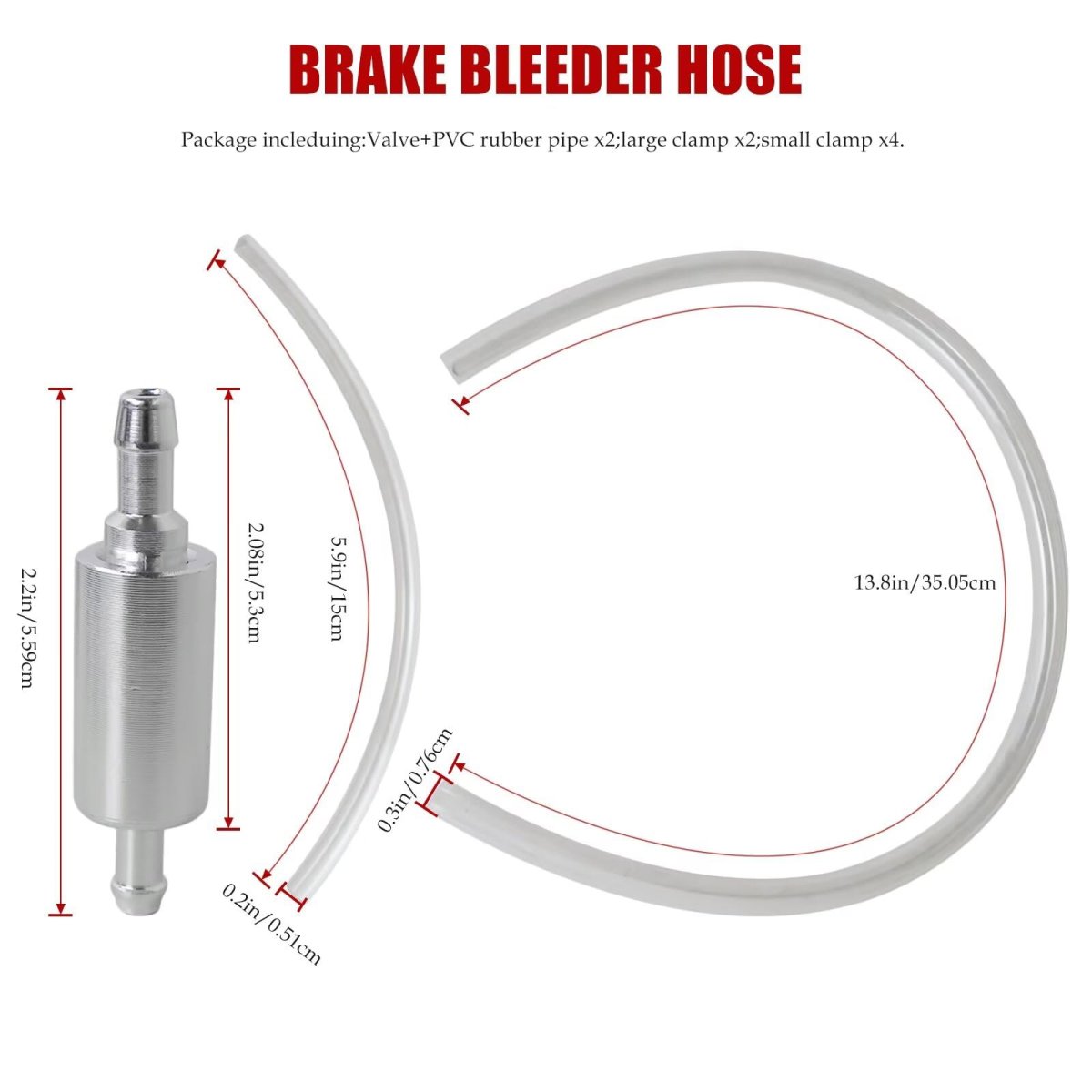 Xspeedonline Brake Bleeder Hose, Motorcycle Brake Bleeder Kit - 2PC with Check Valve Compatible for Car Motorcycle Clutch. Effective One-Person Brake Bleeding - Designed to work with DOT 4 and other common brake fluids, enabling efficient hydraulic system bleeding by a single person while helping to minimize fluid waste.. One-Way Check Valve Design - Integrated check valve allows brake fluid to flow in one direction only, working to prevent air from re-entering the brake or clutch system during the bleeding process.. Aluminum and Flexible Tube Construction - Combines aluminum end fittings with a transparent flexible tube that maintains clarity for bubble monitoring while withstanding exposure to brake fluids.. Secure Metal Clip Connection - Features metal clips that attach firmly to brake bleeder nipples, helping to create a stable connection during the bleeding procedure..Other fine products