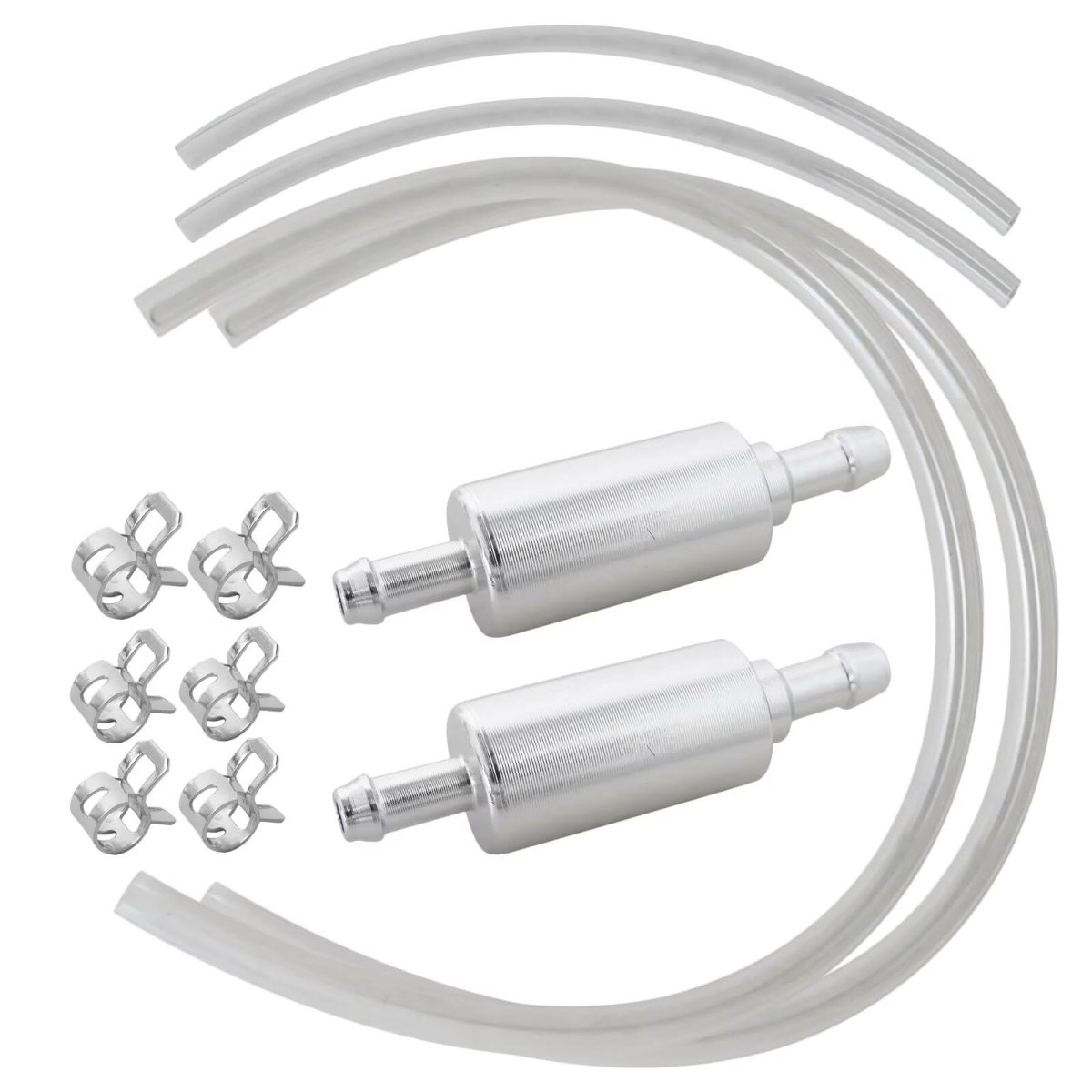 Item: Brake Bleeder Hose, Motorcycle Brake Bleeder Kit - 2PC with Check Valve for Car Motorcycle Clutch. Effective One-Person Brake Bleeding: Designed to work with DOT 4 and other common brake fluids, enabling efficient hydraulic system bleeding by a single person while helping to minimize fluid waste.. One-Way Check Valve Design: Integrated check valve allows brake fluid to flow in one direction only, working to prevent air from re-entering the brake or clutch system during the bleeding process.. Aluminum and Flexible Tube Construction: Combines aluminum end fittings with a transparent flexible tube that maintains clarity for bubble monitoring while withstanding exposure to brake fluids.. Secure Metal Clip Connection: Features metal clips that attach firmly to brake bleeder nipples, helping to create a stable connection during the bleeding procedure..Other fine products