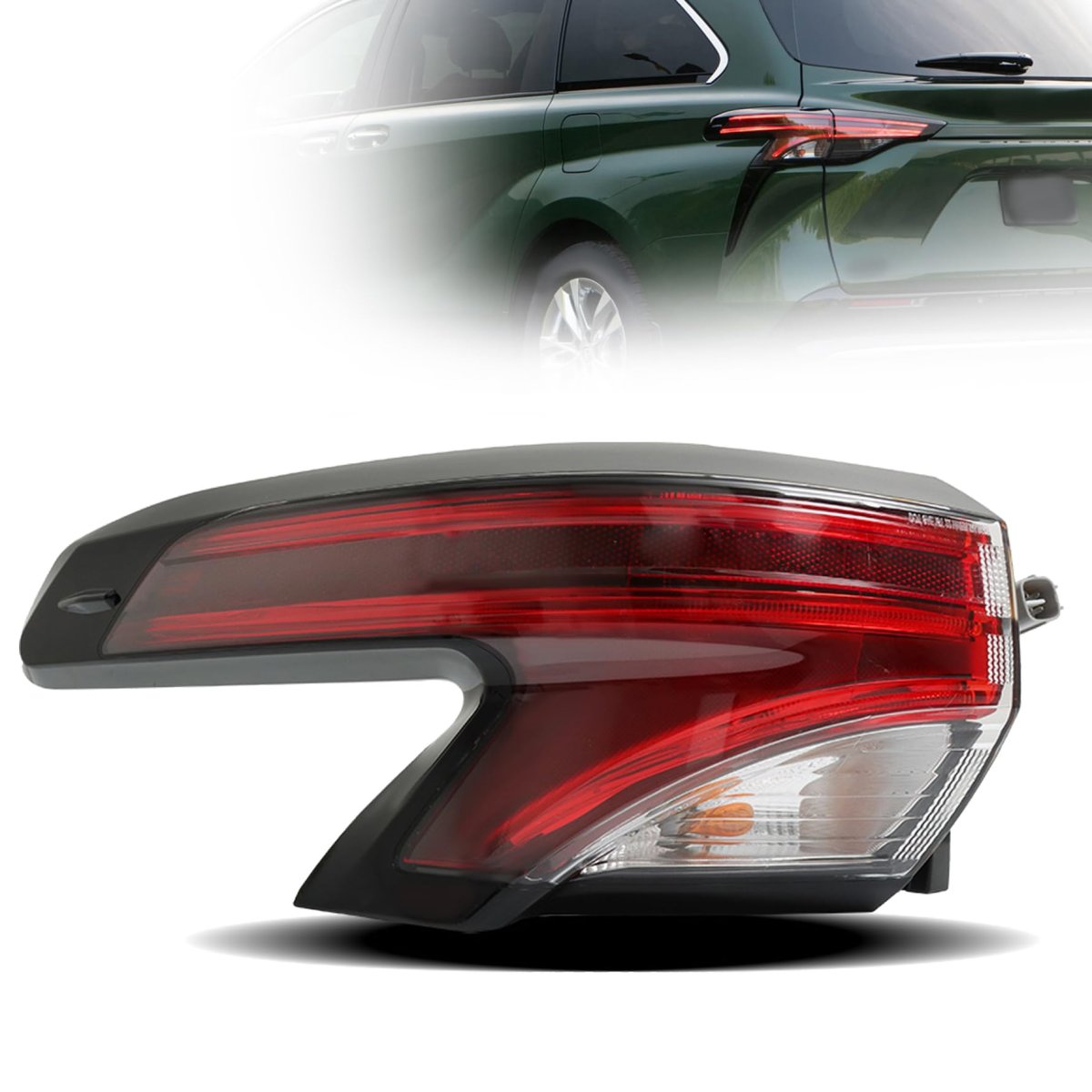 Fitment-This tail light replacement for Sienna LE XLE 2021 2022. Part Number-8156008070. Perfect match for the original car. Packaged Included-1 x rear tail light ( left side ). Durability-Special housing is re-sistant to water, long lasting. This product has a beautiful appearance and uses a high reflective mirror. Installation-No need for any modifications, it can be directly installed in the original position and replaced directly. No installation instruction included, professional installation is highly recommended.Other fine products