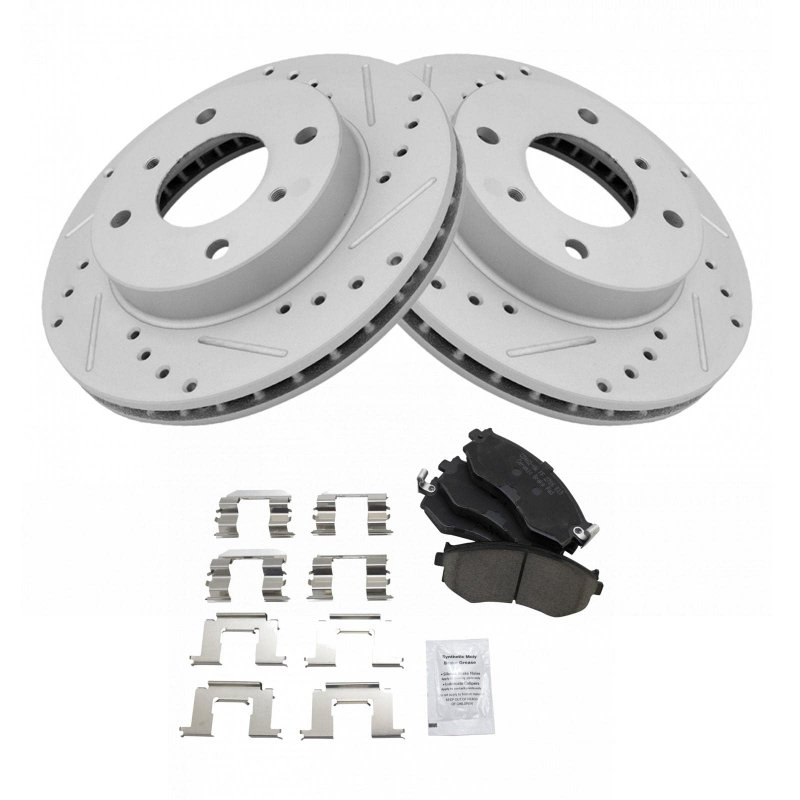 Vehicle Fitment Details:Fits Nissan 240SX 1997-1998 Note: with 5 Lug Wheels, with ABS Brakes Position: Front. Enhanced Performance:The Cross Drilled and Slotted Brake Rotors Provide Improved Braking Performance, Allowing For Better Heat Dissipation and Reduced Brake Fade.. Increased Durability:The Premium G-Coated Brake Rotor Coating Offers Superior Corrosion Resistance, Ensuring Long-Lasting Performance and Durability.. Superior Stopping Power:The Ceramic Brake Pad Friction Material Provides Excellent Stopping Power, Delivering Consistent and Reliable Braking Performance.. Product Features:Wheel Lug Count: 4 Lug Brake Pad Friction Material: Ceramic Kit Includes: (2) Front Performance Brake Rotors (1) Front Ceramic Brake Pad Set with Contact Point Grease & Hardware Brake Rotor Type: Cross Drilled & Slotted Brake Pad Bonding Type: Premium Posi Brake Rotor Coating: Premium G-Coated Product Line: Performance Front Brake Rotor Diameter: 10.12 in. (257mm) Front Brake Rotor Venting Type: Vented.Other fine products