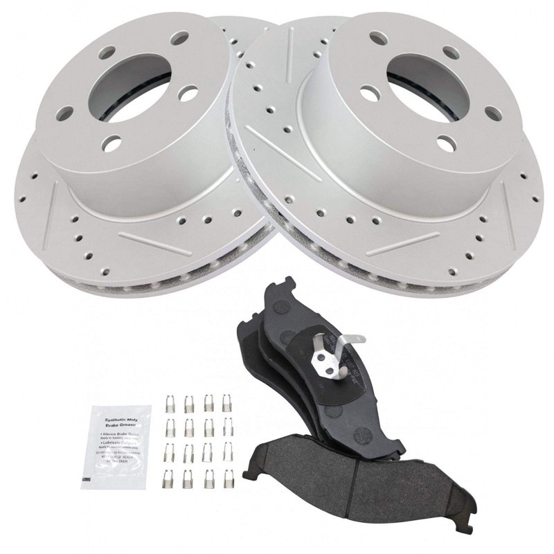 - Brake Pads And Coated Rotors Set Front With Drilled Slotted Semi-metallic All-weather Mechanics Choice For 1990-1992 Jeep