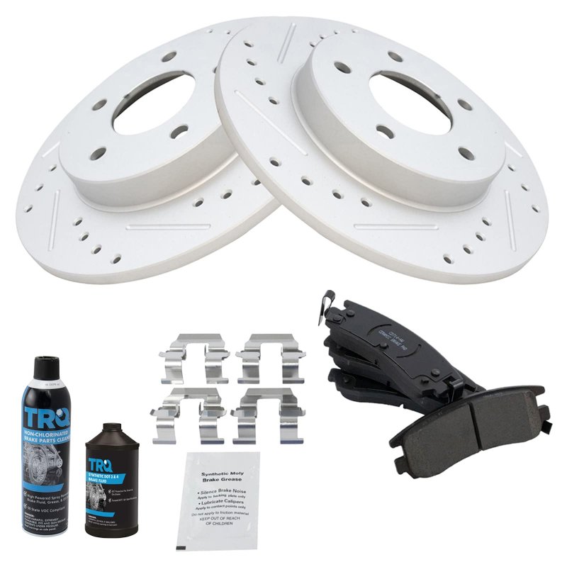 Vehicle Fitment Details:Fits Cadillac Seville 1992-1997 Note: with 5 Lug Wheels Position: Rear. Enhanced Braking Performance:The Rear Disc Brake Kit Features Cross-Drilled and Slotted Brake Rotors, Which Improve Heat Dissipation and Reduce Brake Fade, Resulting In Better Braking Performance.. Durable and Long-Lasting:The Premium G-Coated Brake Rotor Coating Provides Excellent Corrosion Resistance, Ensuring The Longevity of The Brake Kit Even In Harsh Conditions.. Smooth and Quiet Operation:The Ceramic Brake Pad Friction Material Offers Superior Stopping Power While Producing Minimal Noise and Vibration, Providing A Smooth and Quiet Braking Experience.. Product Features:Wheel Lug Count: 5 Lug Brake Pad Friction Material: Ceramic Kit Includes: (2) Rear Performance Brake Rotors (1) 12 oz DOT 3 & 4 Brake Solution (1) 13 oz Non-Chlorinated 50 State Formula Brake Solution (1) Rear Ceramic Brake Pad Set with Contact Point Grease & Hardware Brake Rotor Type: Cross Drilled & Slotted Brake Pad Bonding Type: Premium Posi Brake Rotor Coating: Premium G-Coated Product Line: Performance Rear Br.Other fine products
