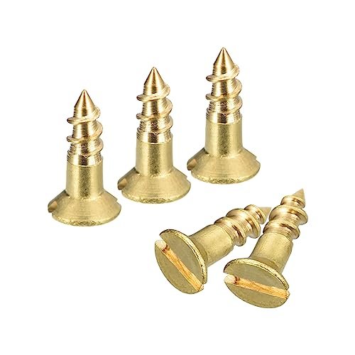 [Product Parameter] - Screw Size: M2.5 x 8(Thread Dia*Total L); Head Dia: 4.6mm/0.18-inch; Head Type: Slotted Flat Head; Package Content: 45 Pcs x Wood Screws. [Material] - These wood screws are made of brass for high strength, wear resistance, corrosion resistance, long-lasting durability and dependability. Clear thread, uniform tooth pitch, and good fastening effect.. [Countersunk Head Design] - Flat head screws can keep the surface flat after installation. Self-tapping screws can be installed without drilling, but pre-drilled holes can better maintain the integrity of the mounting surface.. [Wide Applications] - Screws are essential necessity in daily life or industrial manufacturing. Widely used in woodworking, furniture, home, industry, gardening, indoor decorations, or any other DIY crafts for installation, repair, and fixing. Such as thin metal parts, wood fences, cabinets, wardrobes, closets, boxes, wooden walls, and fixing hinges, latches, hasp, etc. into wooden surfaces. Especially suitable for indoor drying places..Other fine products