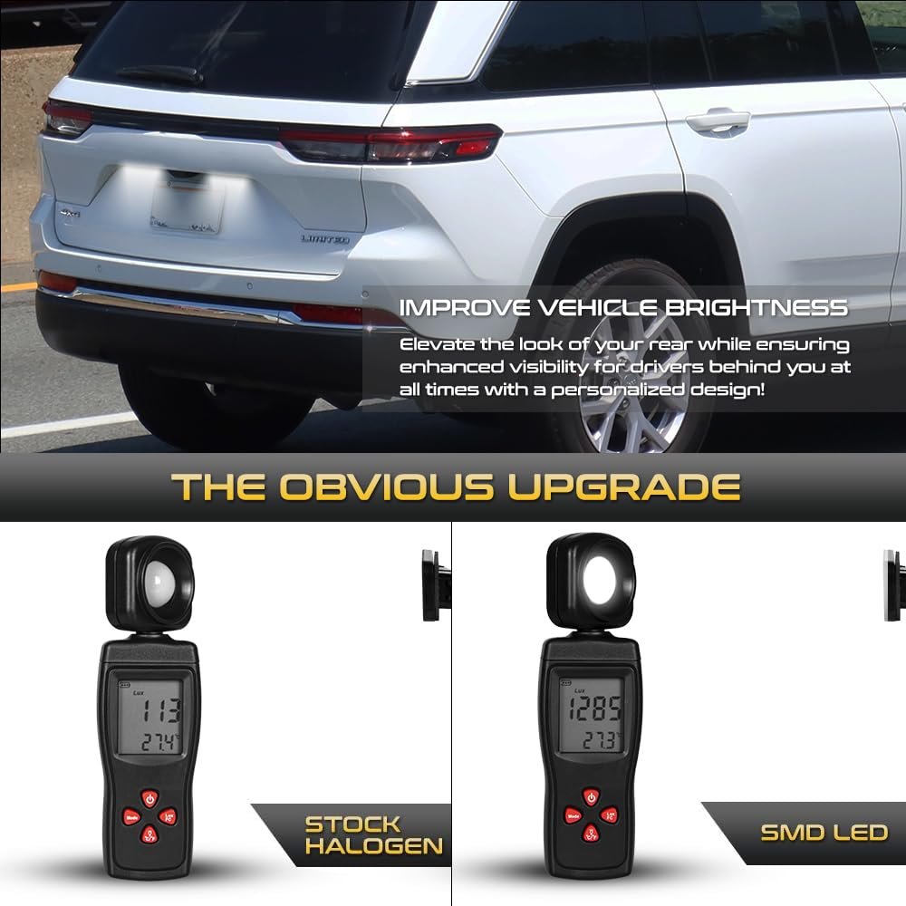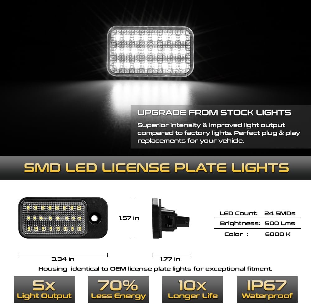 [Fitment Guide] -This License Plate Lamp Is Fully Compatible with 2019-2023 Jeep Cherokee. [Package Content] - Include Driver and Passenger Side Complete Set (2-Pieces) Pair In Box; You only need to add 1 quantity to cart. [Premium LED Technology] - Designed with Powerful LEDs to be Visually Striking and Enhance Visibility. [SAE Approved & DOT Certified] - 100% Street Legal. Meet All Regulations In USA & Canada..