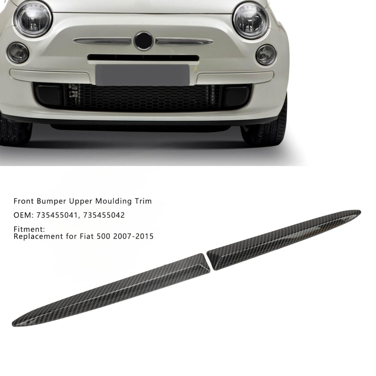- Bumper Trim Front Upper Moulding With Carbon Fiber Pattern Abs Material Replacement For 500 2007 To 2015 1 Pair