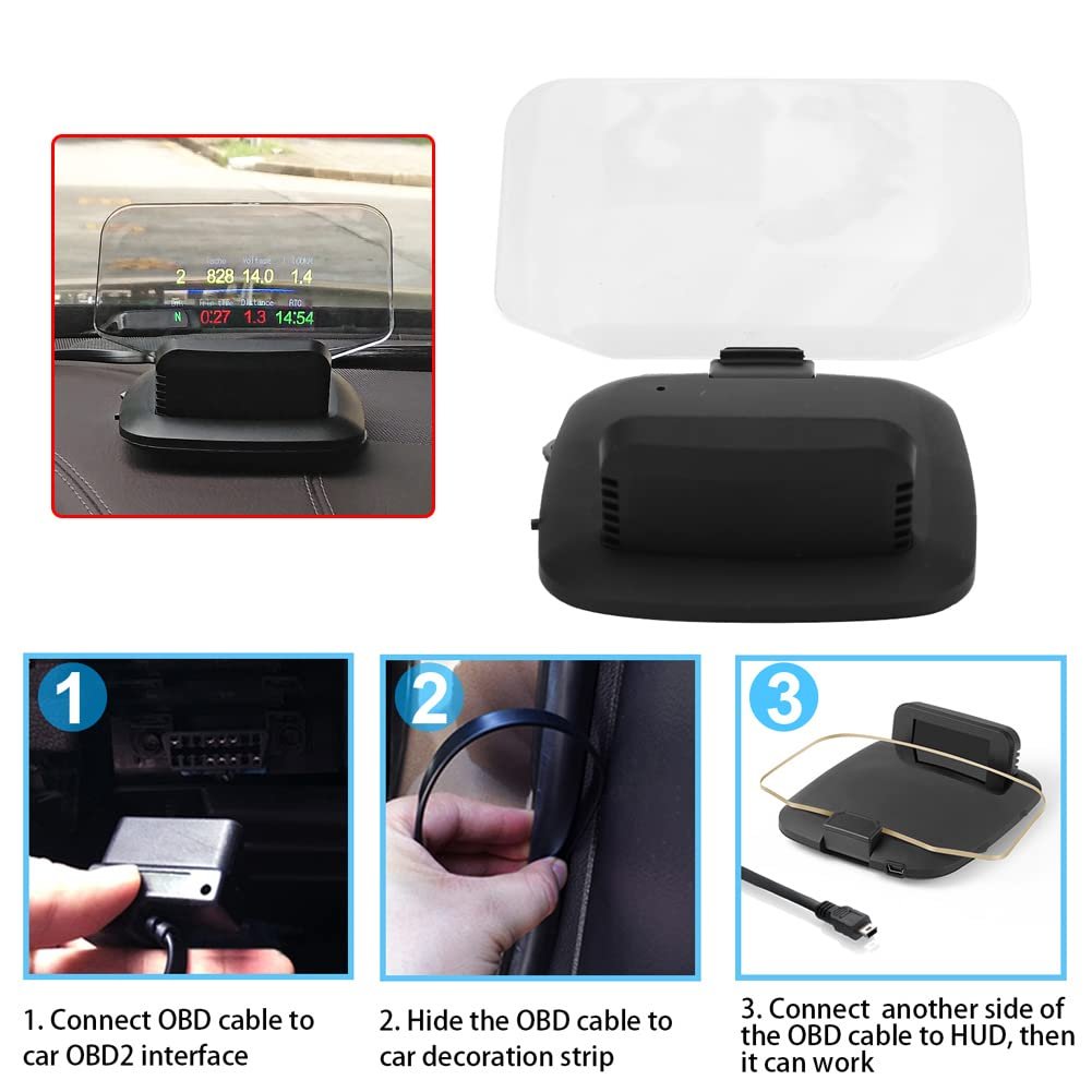 [Obd2+ Dual Mode] Suitable for all car , the hud offers obd mode for fuel consumption, mileage tracking, system data, acceleration testing, and more.. [Exquisite Design] The hud features a unique design that is independent of external light, providing clear stereo imaging without ghosting.. [Powerful Display] Display various essential information such as speed, water temperature, voltage, and fault codes. early warnings for breakdowns due to water temperature and voltage issues.. [Stereoscopic Imaging] Utilizes a translucent reflective lens to project information in the air, with the flexibility to switch between kilometers/miles and celsius/fahrenheit.. [Plug and Play] No additional film or reflection is needed, making it easy to operate and enhancing high-tech assisted driving for safer journeys..Other fine products