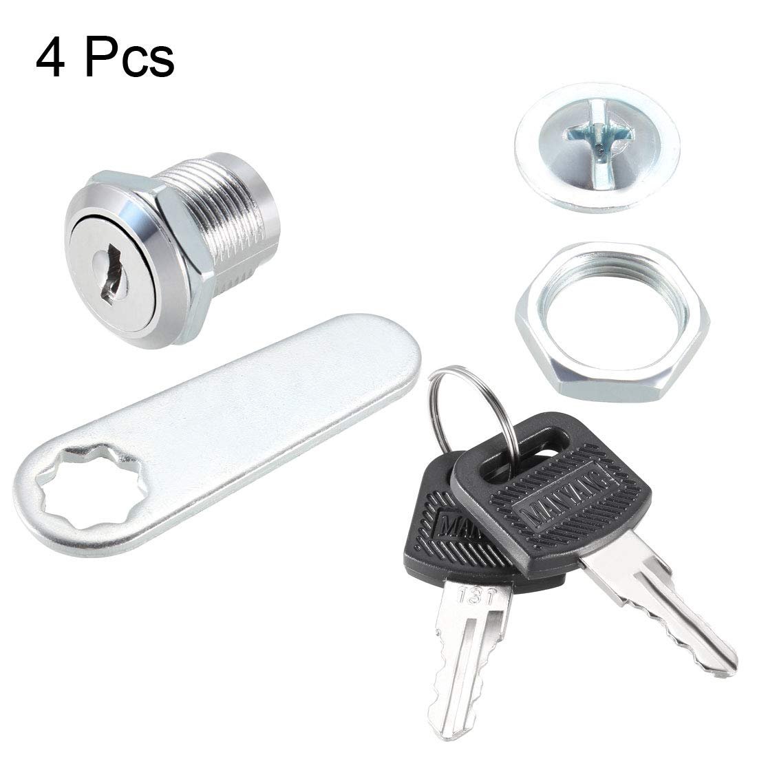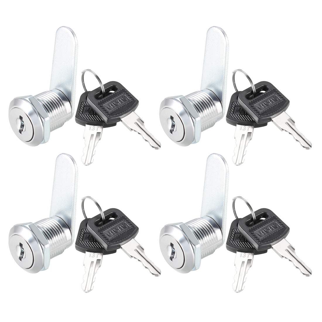 Size: This cam lock features 17.5mm cylinder diameter with 13/16" cylinder length that will fit material thickness up to 1/2". It comes with #3 cam. Made of zinc alloy, chromium-plated surface and anti-oxidation process, which is wear-resistant and durable to use.. Keyed Alike: Keyed alike means one key fits all locks. All locks in a set can be opened with the same key which is beneficial when multiple locks are used by the same person so that only one key needs to be used.. Easy to Install: Drill a hole at the suitable place, insert the lock head, fix the cam with fastening screw. It can be mounted on metal or wood panels.. Function: Helps to protect personal privacy, and important materials, supply you a security personal space.. Applications: Used for sliding door, showcase, cabinet, drawer, file cabinet, tool box, mail box, furniture, RV compartment, etc..Other fine products