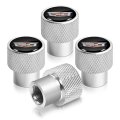 - Cadillac Crest Logo In White On Shining Silver Aluminum Tire Valve Stem Caps