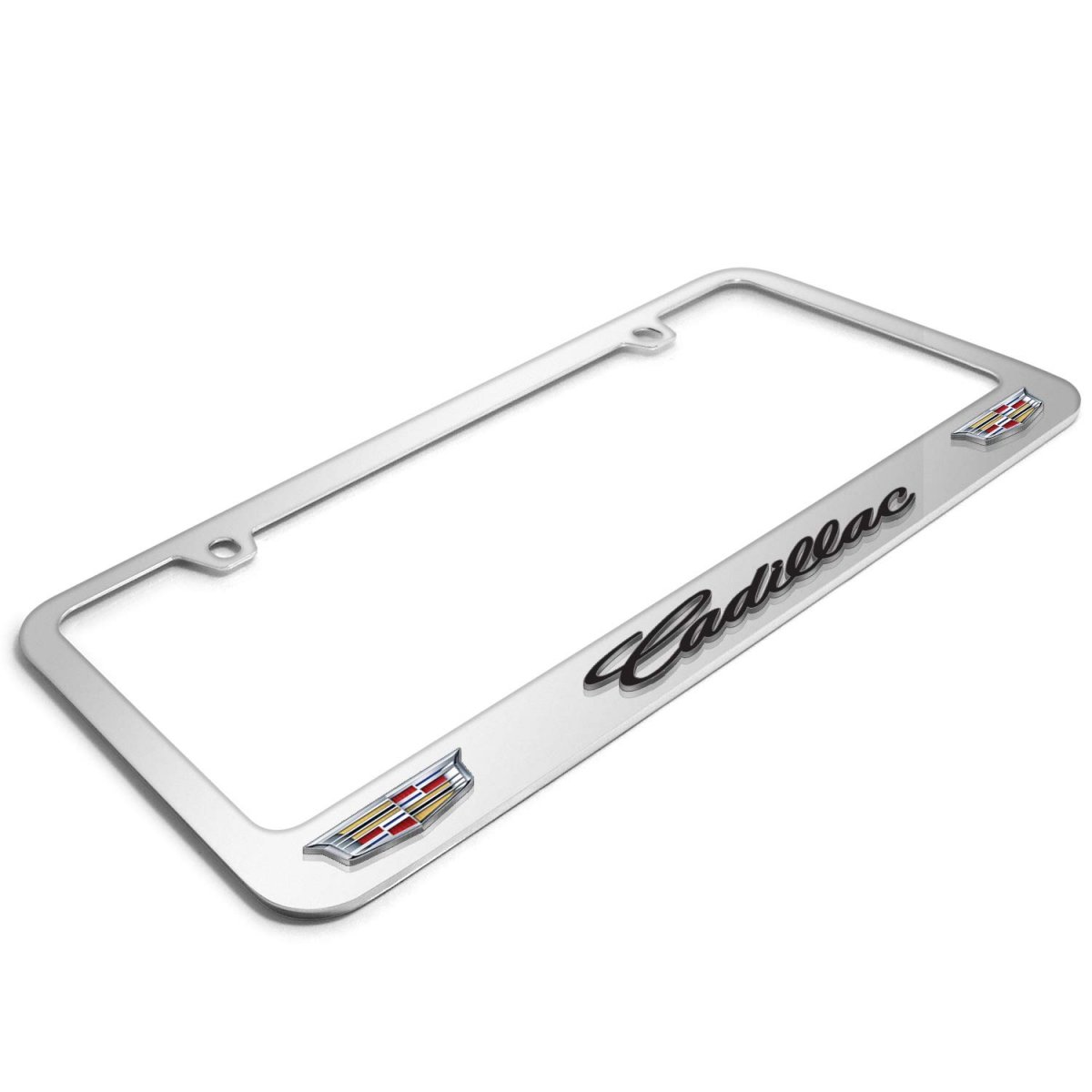 - Cadillac Dual Logo Crest 3d Embossed Letters On Mirror Chrome Metal License Plate Frame