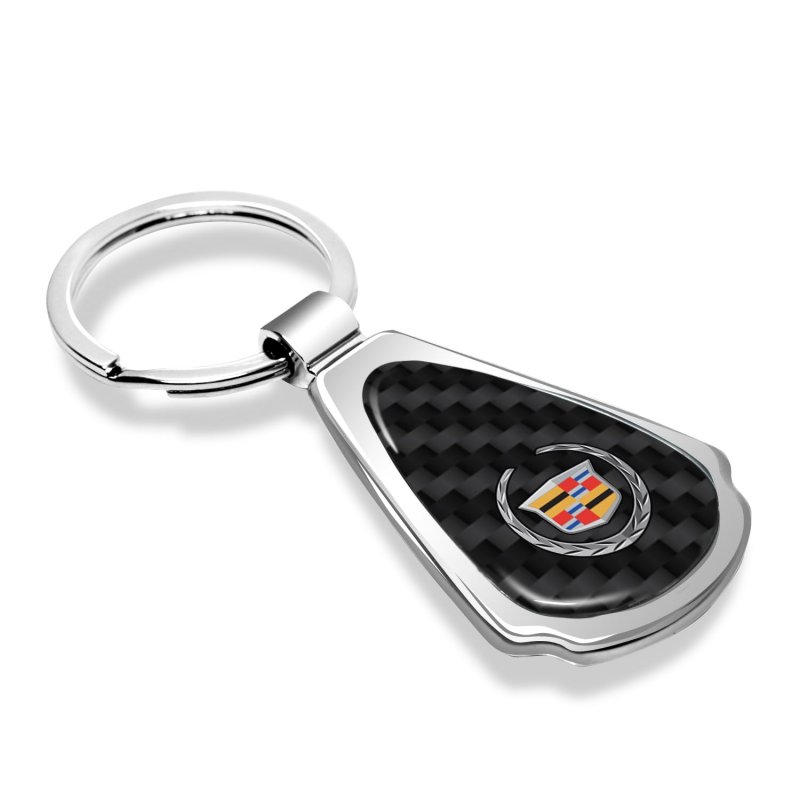 - Cadillac Logo Real Black Carbon Fiber Chrome Metal Teardrop Key Chain Keychain Official Licensed