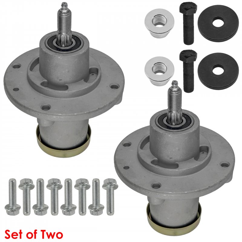 2 Spindle Assembly with Bolts. Specs: Height: 7" / 5 Points Star Blade. Note: Mounting holes do not have thread. Power tool is needed to install the bolts. It is designed to withstand the vibration.. We strongly suggest comparing the posted picture to the unit(s) that needs to be replaced..Other fine products