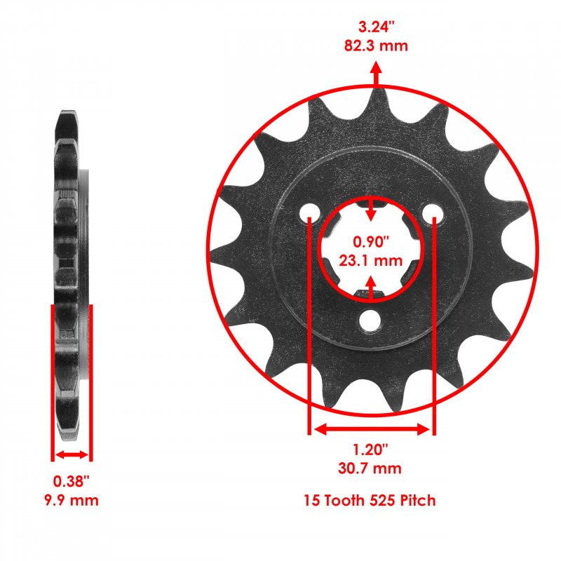 Drive Chain with Front and Rear Sprockets. Compatible with following Suzuki models: DR650SE 1996-2017. Order Includes: Drive Chain with Master Link and Rivet Link (Tensile Strength 8200 pounds), Front Sprocket 15 Teeth / Material: Steel, Rear Sprocket 42 Teeth / Material: C49 High Carbon Steel. The chain comes in standard 120 Links. Features: O-Ring Chain in Blue color.Other fine products