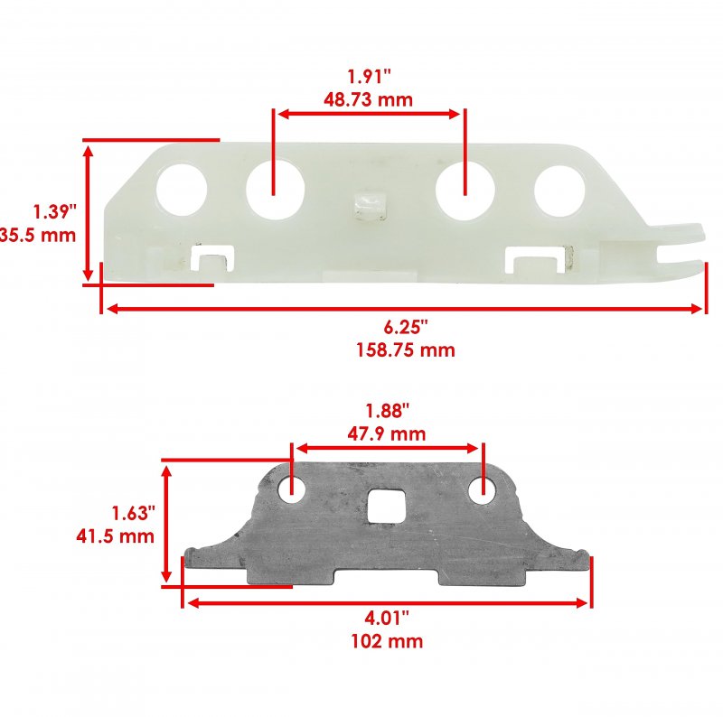 Order Includes: 2x Cam Chain Tensioner Guides, 1x Cam Chain Guide. Compatible with Polaris models: RZR XP 4 900 2013 . Part Number & Dimensions: Cam Chain Tensioner Guide: 3022150, Height : 248.5 mm / 9.78 ", Length : 13.5 mm / 0.53 " / Cam Chain Tensioner Guide: 3022151, Height : 244.7 mm / 9.63 ", Length : 13.74 mm / 0.54 ". Cam Chain Guide: 3022836, Length : 158.75mm / 6.25", Height : 35.5mm / 1.39", Hole DIstance : 48.73mm / 1.91". We strongly suggest comparing the posted picture to the unit(s) that needs to be replaced..Other fine products