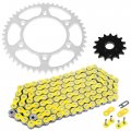Drive Chain with Front and Rear Sprockets. Compatible with following Honda models: CBR900RR 1996-1999. Order Includes: Drive Chain with Master Link and Rivet Link (Tensile Strength 6000 pounds), Front Sprocket 16 Teeth / Material: Steel, Rear Sprocket 43 Teeth / Material: C49 High Carbon Steel. The chain comes in standard 120 Links. Features: Chain in Gold color.Other fine products